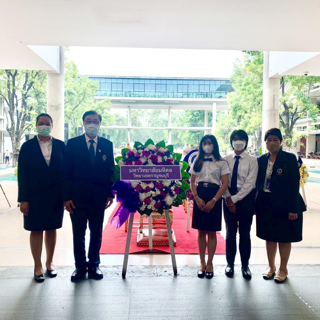 ในโอกาสนี้ รองศาสตราจารย์ ดร.น.สพ.กำลัง ชุมพลบัญชร ผู้ช่วยอธิการบดีฝ่ายวิทยาเขตกาญจนบุรี พร้อมด้วยบุคลากรวิทยาเขตกาญจนบุรี เป็นผู้แทนเข้าร่วมพิธีวางพวงมาลาถวายราชสักการะ ณ ศูนย์เรียนรู้มหิดล มหาวิทยาลัยมหิดล ศาลายา