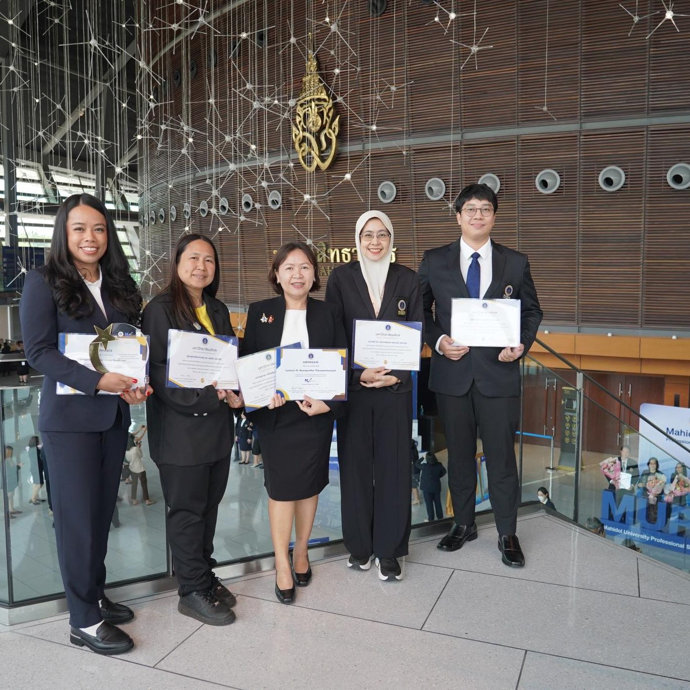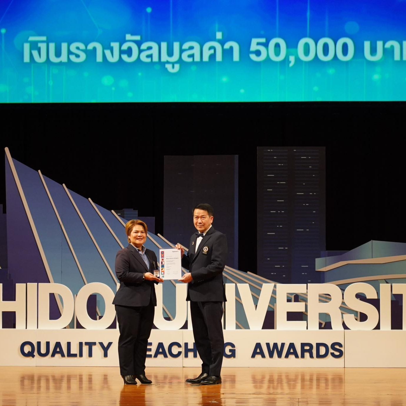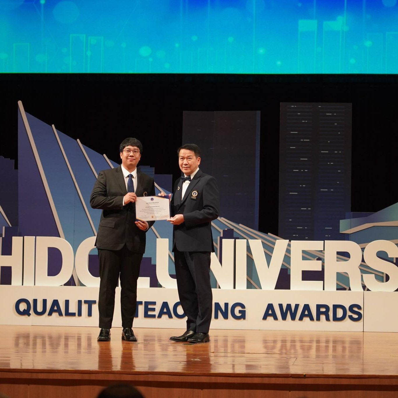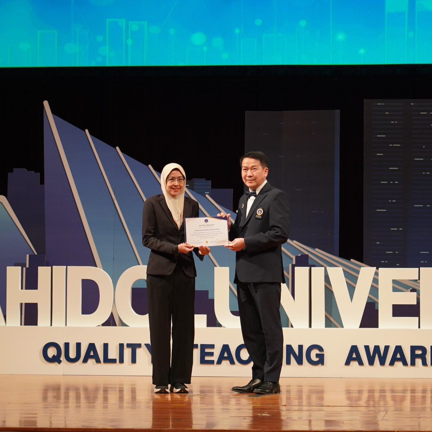 วันที่ 3 เมษายน 2568 ศาสตราจารย์ นายแพทย์ปิยะมิตร ศรีธรา อธิการบดี มหาวิทยาลัยมหิดล เป็นประธานเปิดงานในพิธีมอบรางวัลและประกาศนียบัตร พร้อมร่วมแสดงความยินดีกับคณาจารย์ที่ได้รับรางวัลประเภทต่างๆ ในงาน “Mahidol University Quality Teaching Awards” ตามที่มหาวิทยาลัยมหิดล ดำเนินงานสนับสนุนการประเมินระดับการจัดการเรียนการสอนตามเกณฑ์มาตรฐานคุณภาพอาจารย์ของมหาวิทยาลัยมหิดล (Mahidol University Professional Standards Framework : MUPSF) รวมทั้งสนับสนุนให้อาจารย์มหาวิทยาลัยมหิดล พัฒนาตนเองในด้านการจัดการเรียนการสอนอย่างต่อเนื่อง และเพื่อเป็นการยกย่อง อาจารย์ที่มีความโดดเด่นในด้านการจัดการเรียนการสอน โดยคณาจารย์วิทยาเขตกาญจนบุรี ร่วมเข้ารับรางวัลและรับประกาศนียบัตร ดังนี้