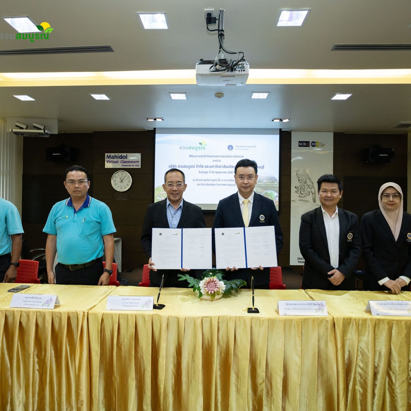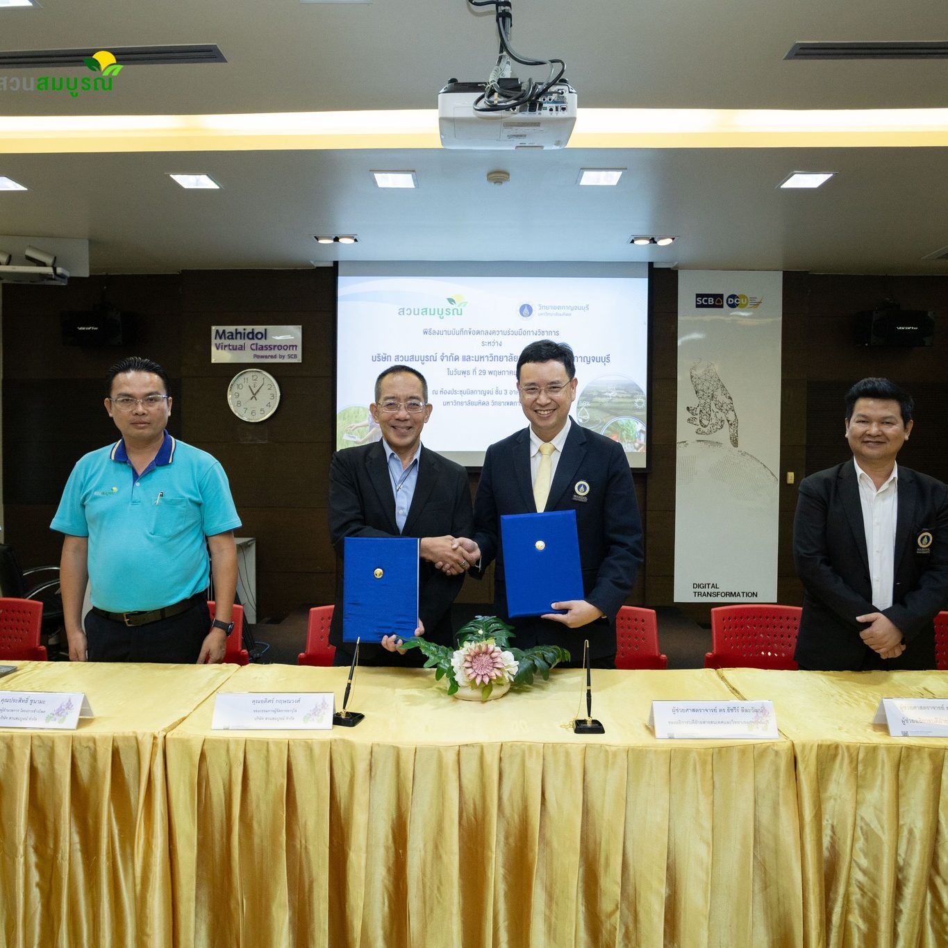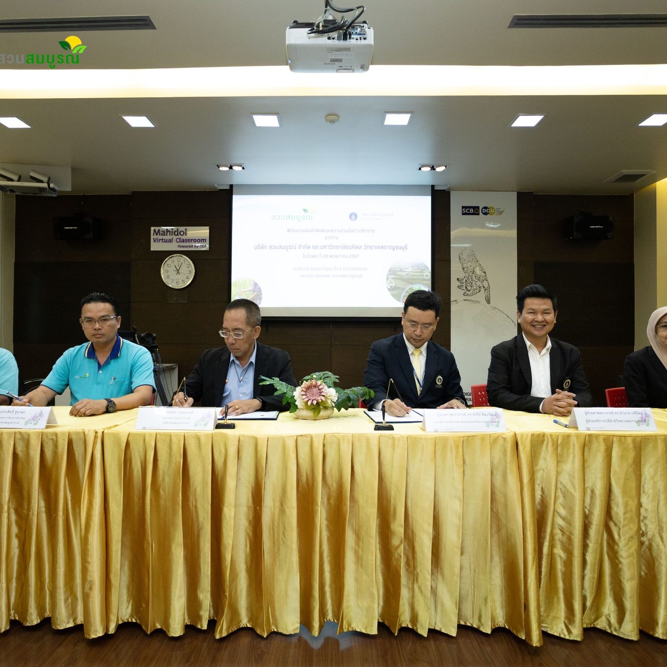 มหาวิทยาลัยมหิดล วิทยาเขตกาญจนบุรี ลงนามบันทึกข้อตกลงความร่วมมือทางวิชาการ ร่วมกับ บริษัท เจริญโภคภัณฑ์อาหาร จำกัด (มหาชน) หรือ ซีพีเอฟ โดยบริษัท สวนสมบูรณ์ จำกัด