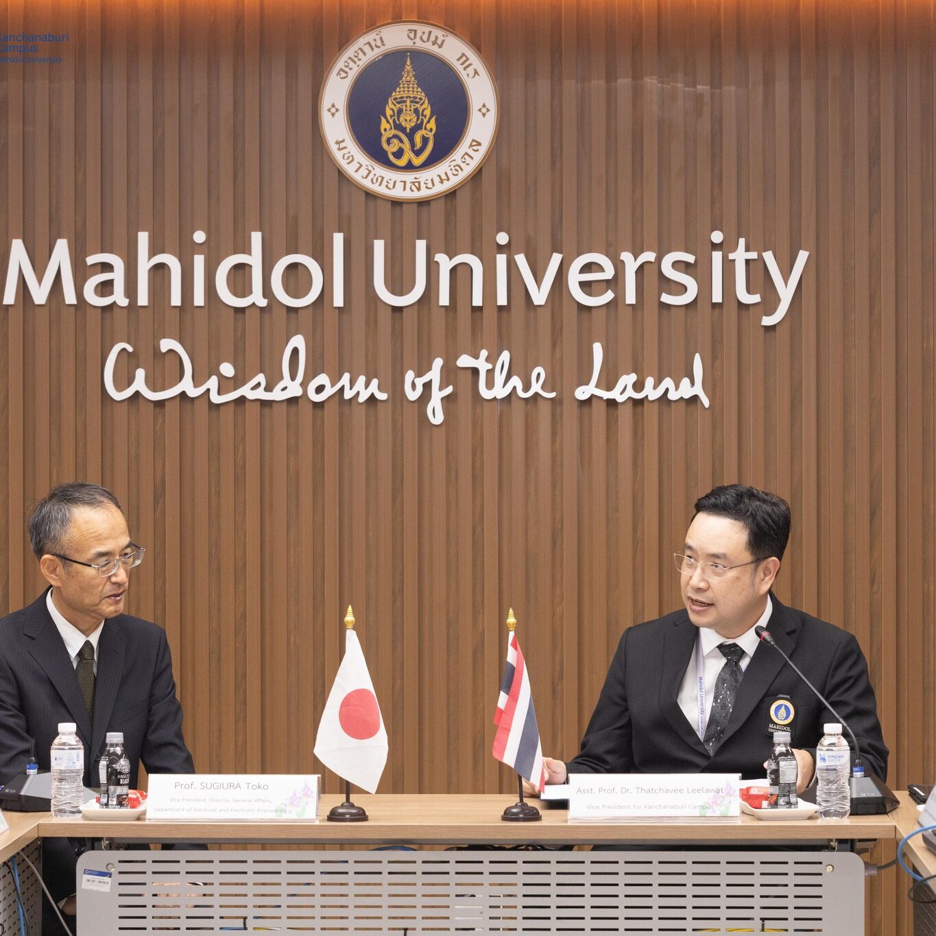 วันที่ 24 ธันวาคม 2568 ผู้ช่วยศาสตราจารย์ ดร.ธัชวีร์ ลีละวัฒน์ รองอธิการบดีฝ่ายวิทยาเขตกาญจนบุรี มหาวิทยาลัยมหิดล ลงนามบันทึกข้อตกลงความร่วมมือระหว่างมหาวิทยาลัยมหิดล วิทยาเขตกาญจนบุรี และ Toyota College, National Institute of Technology ประเทศญี่ปุ่น โดย Prof. Toko Sugiura, Vice President of NIT(KOSEN), Toyota College ผู้แทน Prof. Dr. AWAGA Kunio, President of NIT(KOSEN), Toyota College ในการลงนามบันทึกข้อตกลงเพื่อสร้างความร่วมมือในการแลกเปลี่ยนนักศึกษา บุคลากร และการทำวิจัยร่วมกัน โดยผู้เข้าร่วมพิธีประกอบด้วย คณะผู้บริหาร คณาจารย์ และเจ้าหน้าที่ จาก Toyota College, National Institute of Technology ประเทศญี่ปุ่น พร้อมด้วยผู้บริหารและคณาจารย์จากวิทยาเขตกาญจนบุรี ประกอบด้วยผู้ช่วยศาสตราจารย์ ดร.อำนาจ เจรีรัตน์ ผู้ช่วยอธิการบดีฝ่ายวิทยาเขตกาญจนบุรี, อาจารย์ ดร.นิธิมา สุทะพินธ์ อาจารย์ประจำสาขาวิชาวิทยาศาสตร์และศิลปศาสตร์ และอาจารย์ ดร.จุฑามาศ สุคนธปฏิภาค อาจารย์ประจำสาขาวิชาชีววิทยาเชิงอนุรักษ์ เข้าร่วมในพิธีลงนาม ณ ห้องประชุม 530 ชั้น 5 สำนักงานอธิการบดี มหาวิทยาลัยมหิดล ศาลายา