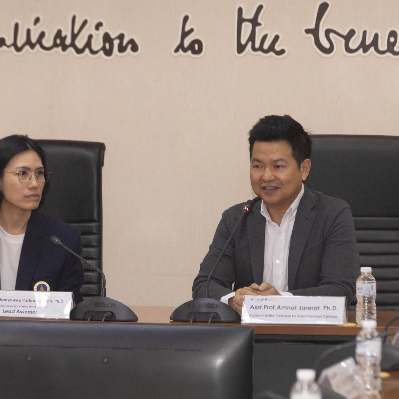 วันที่ 19 สิงหาคม 2568 ผู้ช่วยศาสตราจารย์ ดร.อำนาจ เจรีรัตน์ ผู้ช่วยอธิการบดีฝ่ายวิทยาเขตกาญจนบุรี พร้อมด้วยคณาจารย์วิทยาเขตกาญจนบุรี ร่วมให้การต้อนรับคณะกรรมการตรวจประเมินคุณภาพการศึกษาระดับหลักสูตรตามเกณฑ์ AUN-QA มหาวิทยาลัยมหิดล (MU AUN-QA Assessment) ประจำปี 2568 ของหลักสูตรบริหารธุรกิจบัณฑิต และหลักสูตรบัญชีบัณฑิต ในระหว่างวันที่ 19-20 สิงหาคม 2568 ซึ่งคณะกรรมการตรวจประเมินฯหลักสูตรบริหารธุรกิจบัณฑิต โดยผู้ช่วยศาสตราจารย์ ดร.ธัญวี ประทุมสุวรรณ์ วิทยาลัยนานาชาติ ประธานตรวจประเมินฯ(Lead) พร้อมด้วยอาจารย์ ดร.ศุภชัย ชาญวรรณกุล คณะศิลปศาสตร์ กรรมการ (Assessor) และคณะกรรมการตรวจประเมินฯหลักสูตรบัญชีบัณฑิต โดยรองศาสตราจารย์ ดร.ธีระพงศ์ ศิริบูรณ์พิพัฒนา คณะแพทยศาสตร์โรงพยาบาลรามาธิบดี ประธานตรวจประเมิน(Lead) พร้อมด้วยอาจารย์ ดร.น.สพ.ไกรพิชญ์ สุธรรมมาภรณ์ คณะสัตวแพทยศาสตร์ กรรมการ(Assessor) โดยคณะกรรมการผู้ตรวจประเมินฯ รับฟังการบรรยายสรุปข้อมูลของหลักสูตรบริหารธุรกิจบัณฑิต และหลักสูตรบัญชีบัณฑิต พร้อมกับสัมภาษณ์ คณะกรรมการบริหารหลักสูตร บุคลากร นักศึกษา ศิษย์เก่าและผู้ใช้บัณฑิต และเยี่ยมชมสถานที่ต่างๆ ภายในวิทยาเขต สิ่งอำนวยความสะดวกในการจัดการเรียนการสอน โดยคณะกรรมการให้ข้อเสนอแนะ เพื่อปรับปรุงแก้ไขและสรุปผลการตรวจประเมินด้วยวาจา ณ ห้องประชุมสกุลกันภัย มหาวิทยาลัยมหิดล วิทยาเขตกาญจนบุรี