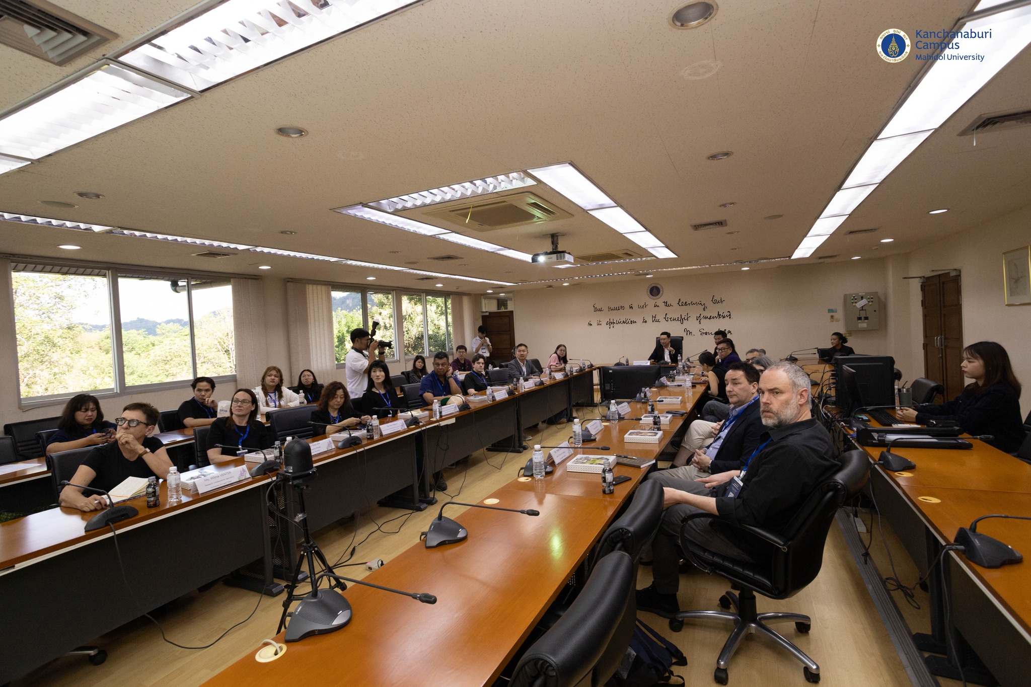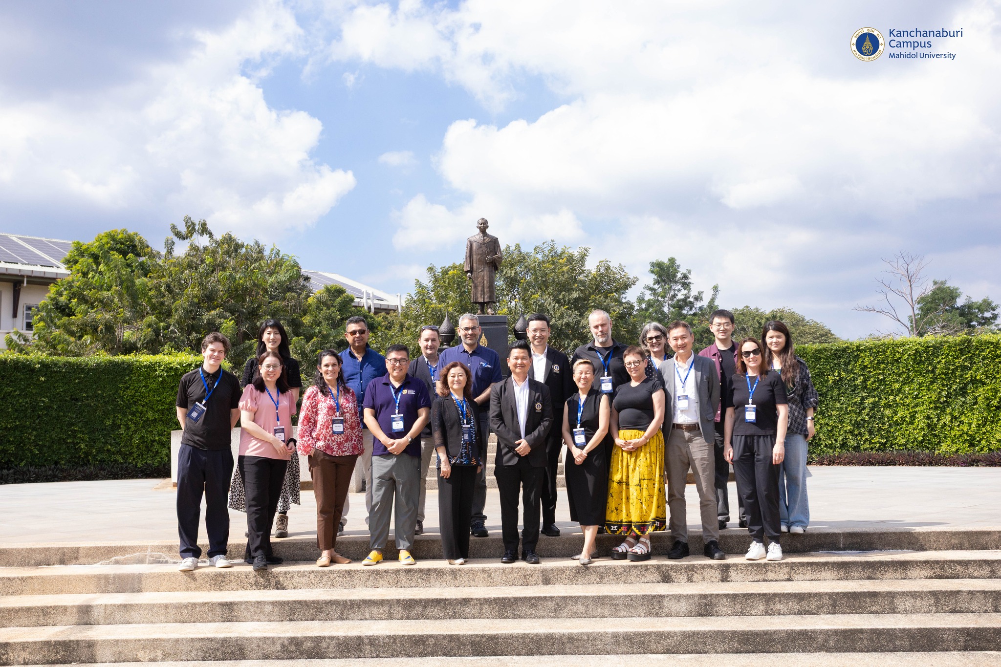 วันที่ 17 ธันวาคม 2568 ผู้ช่วยศาสตราจารย์ ดร.ธัชวีร์ ลีละวัฒน์ รองอธิการบดีฝ่ายวิทยาเขตกาญจนบุรี พร้อมด้วยคณะผู้บริหารวิทยาเขตกาญจนบุรี ให้การต้อนรับ คณะผู้บริหารและผู้แทนจากสถาบันพันธมิตรจากต่างประเทศ จำนวน 17 แห่ง ได้แก่ Durham University, Florida International University, Institute of Science Tokyo, Kunming Medical University, Macquarie University, Nanjing University, National Cheng Kung University, National Taiwan University, Shanghai Medical College, Fudan University, Seoul National University, The University of British Columbia, The University of New South Wales, University College Dublin, University of Cape Town, University of Reading Malaysia, University of Southern Queensland และ University of Sussex ที่เข้าร่วมประชุมงาน Mahidol University International Partnerships Week 2025 ภายใต้หัวข้อ “Global Synergies for Sustainable Impact: Advancing Holistic Well-being and Partnerships for the Goals” โดยกองวิเทศสัมพันธ์ มหาวิทยาลัยมหิดล จัดขึ้นเป็นครั้งแรก เพื่อส่งเสริมความร่วมมือทางวิชาการและพันธกิจสากลของมหาวิทยาลัย ตลอดจนสร้างเครือข่าย ความร่วมมือกับสถาบันอุดมศึกษาทั้งในและต่างประเทศ และการแลกเปลี่ยนองค์ความรู้และแนวทางการพัฒนาสู่ความยั่งยืนในระดับโลก ซึ่งจัดขึ้นในระหว่างวันที่ 16 – 19 ธันวาคม 2568 ณ มหาวิทยาลัยมหิดล ศาลายา