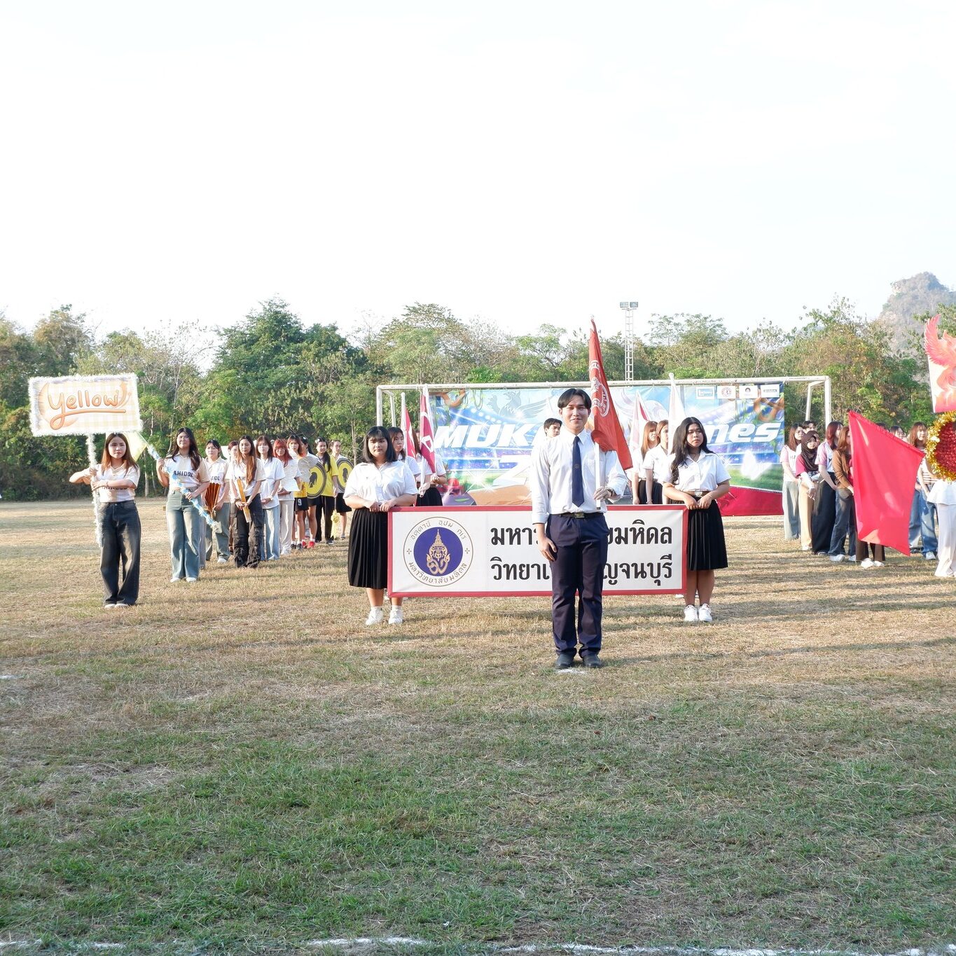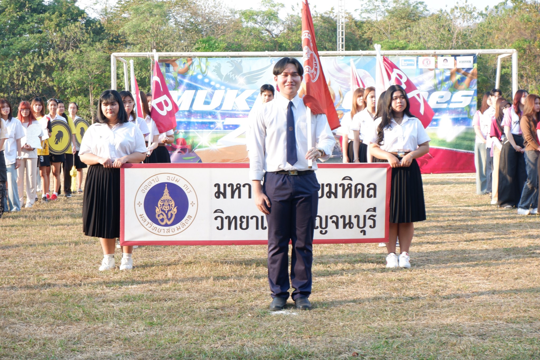 วันที่ 14 มกราคม 2569 ผู้ช่วยศาสตราจารย์ ดร.อำนาจ เจรีรัตน์ ผู้ช่วยอธิการบดีฝ่ายวิทยาเขตกาญจนบุรี เป็นประธานเปิดการแข่งขันกีฬาสีสัมพันธ์ “MUKA HUB X MUKA GAMES 2026“ โดยนายชวัลวิทย์ อันทะสี นักศึกษาสาขาวิชาวิศวกรรมสิ่งแวดล้อมและการจัดการภัยพิบัติ ประธานการจัดกิจกรรมฯ กล่าวรายงานวัตถุประสงค์ ซึ่งจัดกิจกรรมโดยทีมสโมสรนักศึกษามหาวิทยาลัยมหิดล วิทยาเขตกาญจนบุรี และงานการศึกษาและกิจการนักศึกษา ในระหว่างวันที่ 14 – 28 มกราคม 2569 เพื่อเสริมสร้างประสบการณ์ชีวิตในรั้วมหาวิทยาลัย ส่งเสริมการทำงานเป็นทีม การพัฒนาศักยภาพภาวะผู้นำของนักศึกษา รวมทั้งได้เปิดโอกาสให้นักศึกษาได้แสดงออกถึงความสามารถด้านกีฬา ความคิดสร้างสรรค์ การสร้างบรรยากาศแห่งความร่วมมือร่วมใจ ความสามัคคีระหว่างนักศึกษาแต่ละสาขาวิชา โดยในพิธีเปิดมีบุคลากรและนักศึกษาเข้าร่วม และเข้าร่วมการแข่งขันกีฬา ณ สนามฟุตบอล มหาวิทยาลัยมหิดล วิทยาเขตกาญจนบุรี
