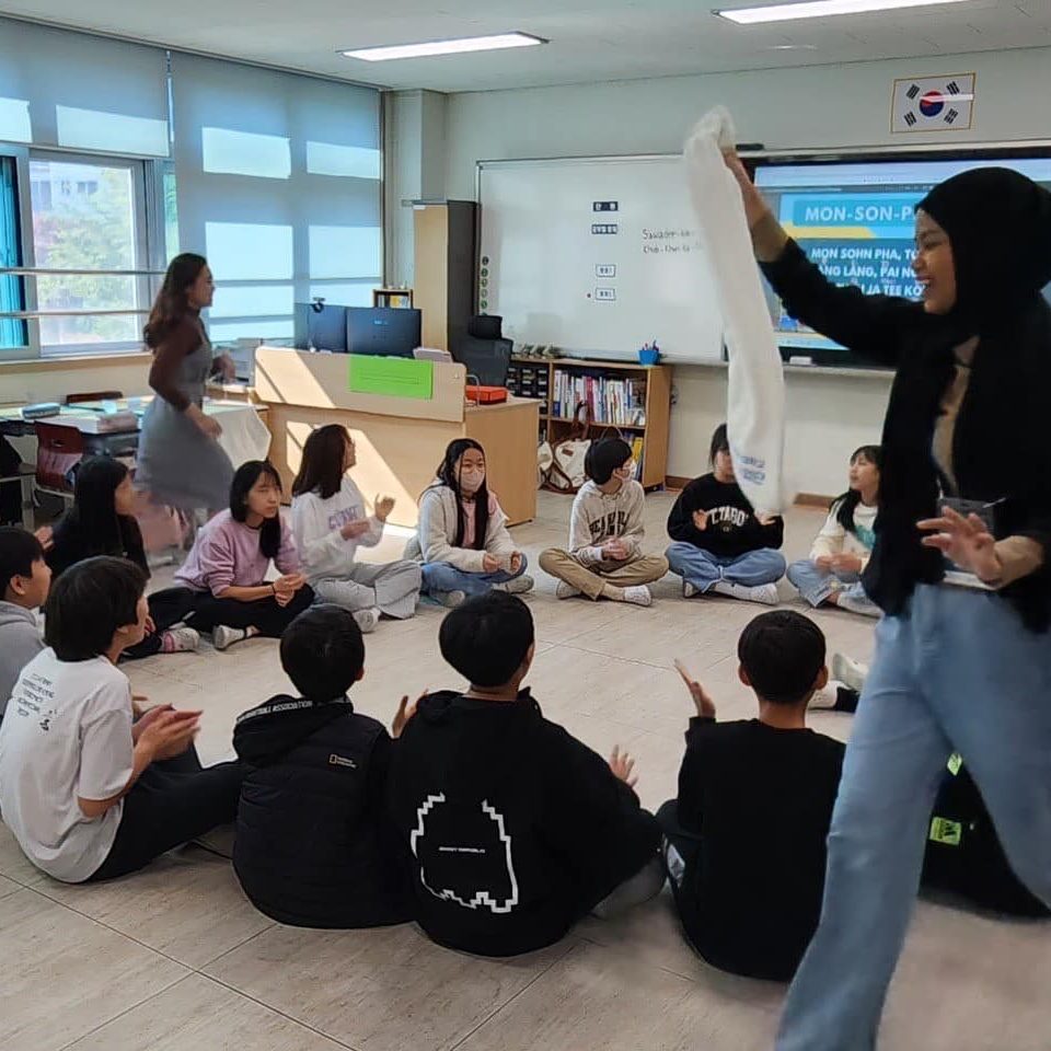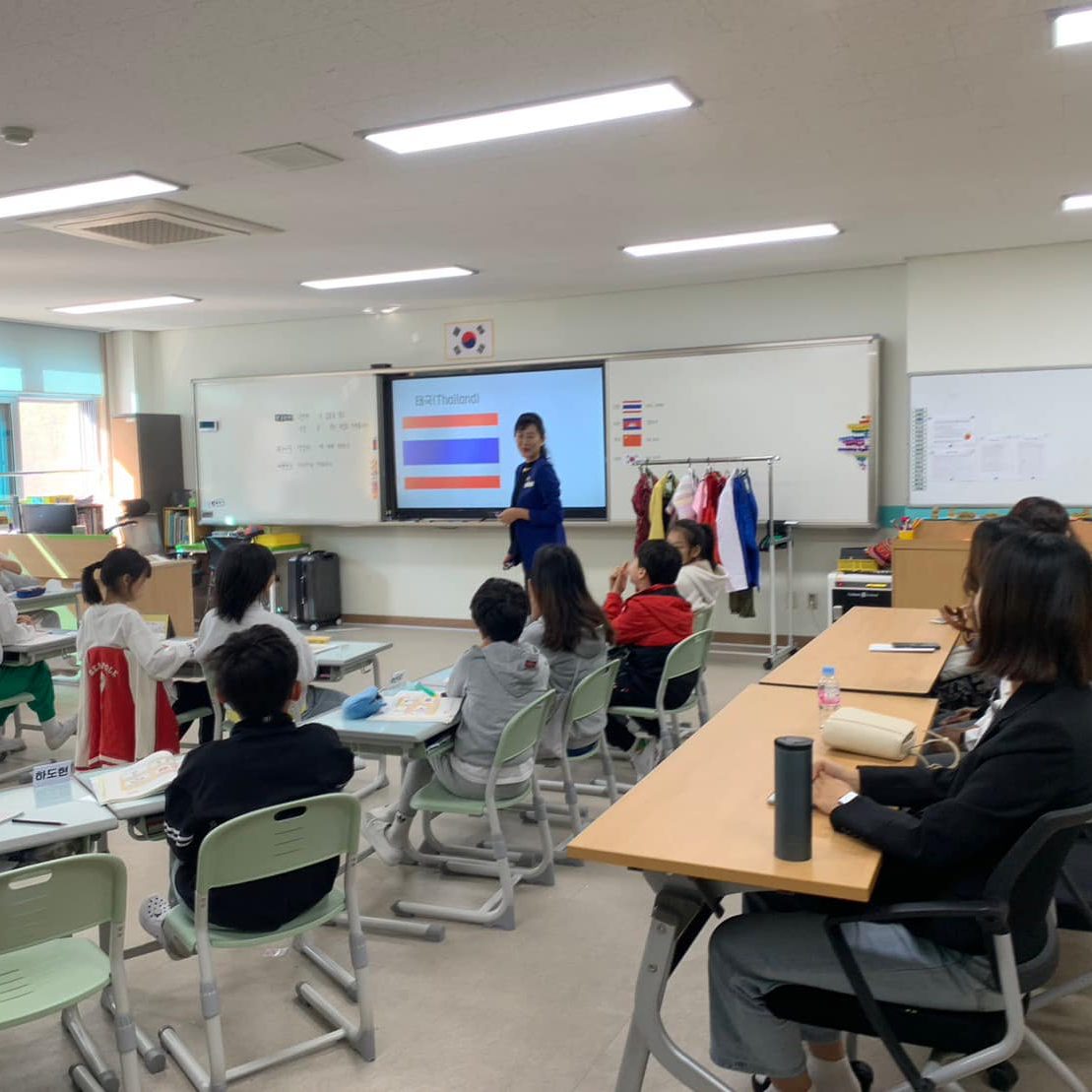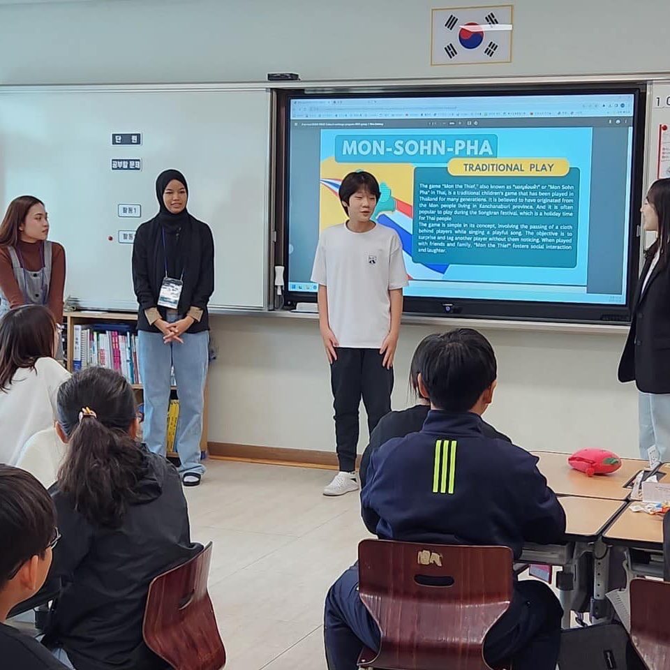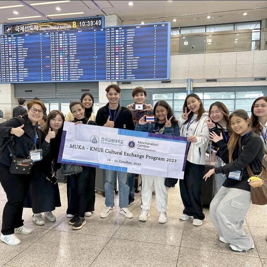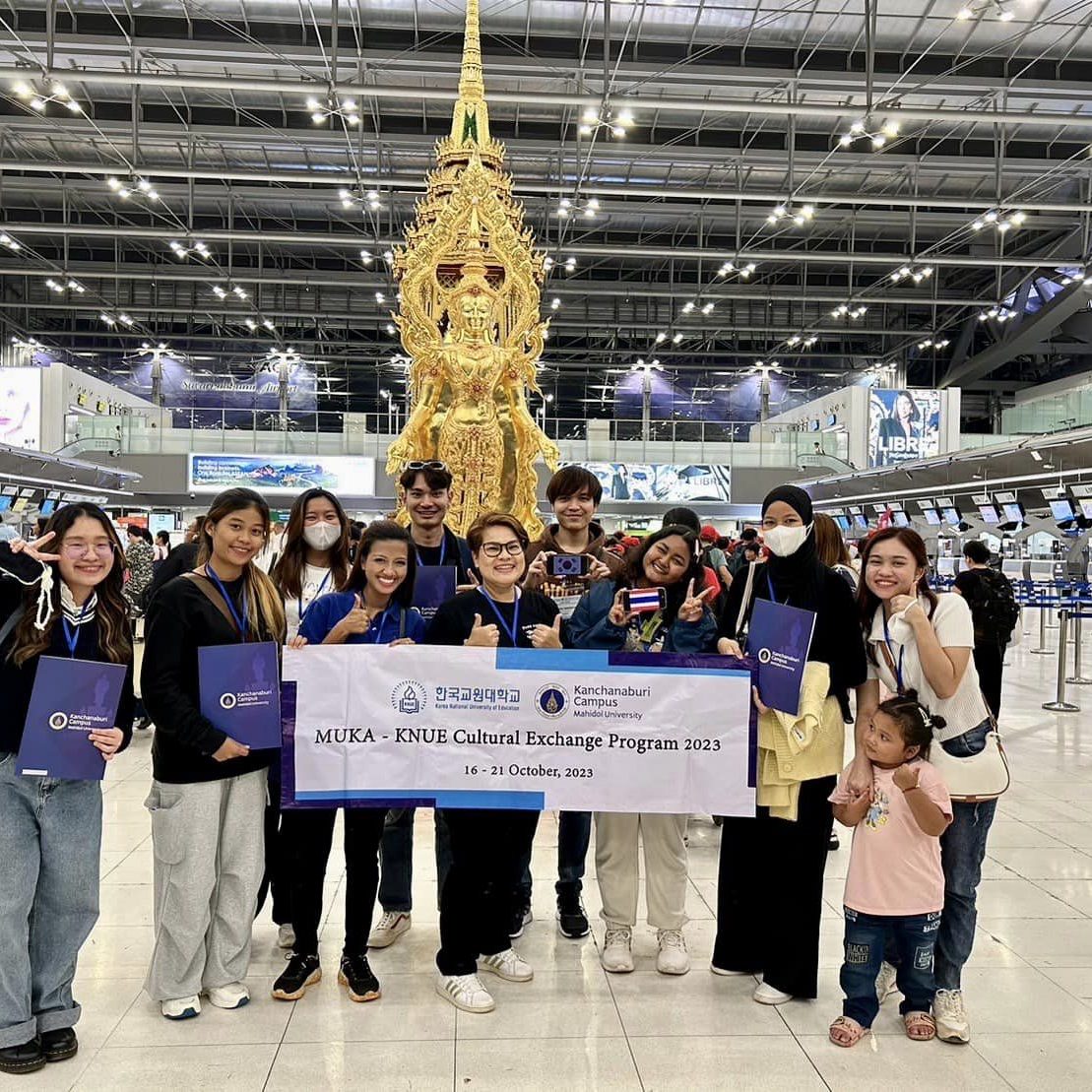 วันที่ 18 ตุลาคม 2566 นักศึกษาวิทยาเขตกาญจนบุรี ที่เข้าร่วมโครงการ “Short-term Student Exchange Program”(MUKA-KNUE cultural exchange program 2023) ร่วมกันจัดกิจกรรมสอนและแลกเปลี่ยนเรียนรู้วัฒนธรรมไทยให้แก่นักเรียนในระดับชั้นประถมศึกษา Wallgok Elementary School ซึ่งเป็นโรงเรียนที่อยู่ภายใต้การดูแลของ Korea National University of Education สาธารณรัฐเกาหลี โดยกิจกรรมประกอบไปด้วย การสานปลาตะเพียน การละเล่นมอญซ่อนผ้า และการสอนภาษาไทยเบื้องต้น โดยในแต่ละกิจกรรม นักเรียนทุกคนได้มีส่วนร่วมในการลงมือปฏิบัติจริง และมีนักศึกษาสาธิตการสอนถ่ายทอดความรู้อย่างใกล้ชิด ส่งผลให้นักเรียนสามารถเรียนรู้และจดจำได้ดี และสนุกสนานกับการทำกิจกรรม อีกทั้งยังรู้สึกประทับใจและชื่นชมในวัฒนธรรมไทยอีกด้วย
