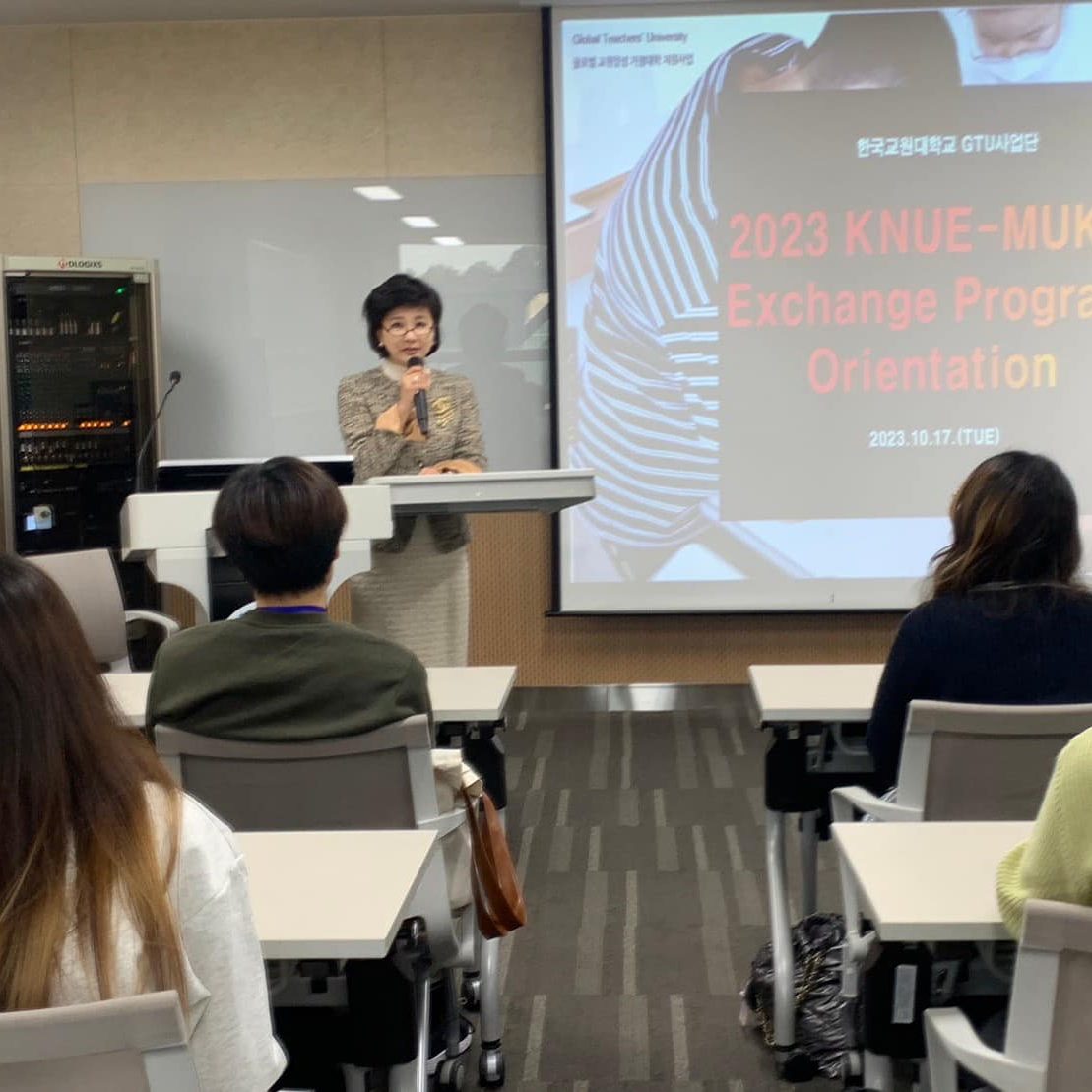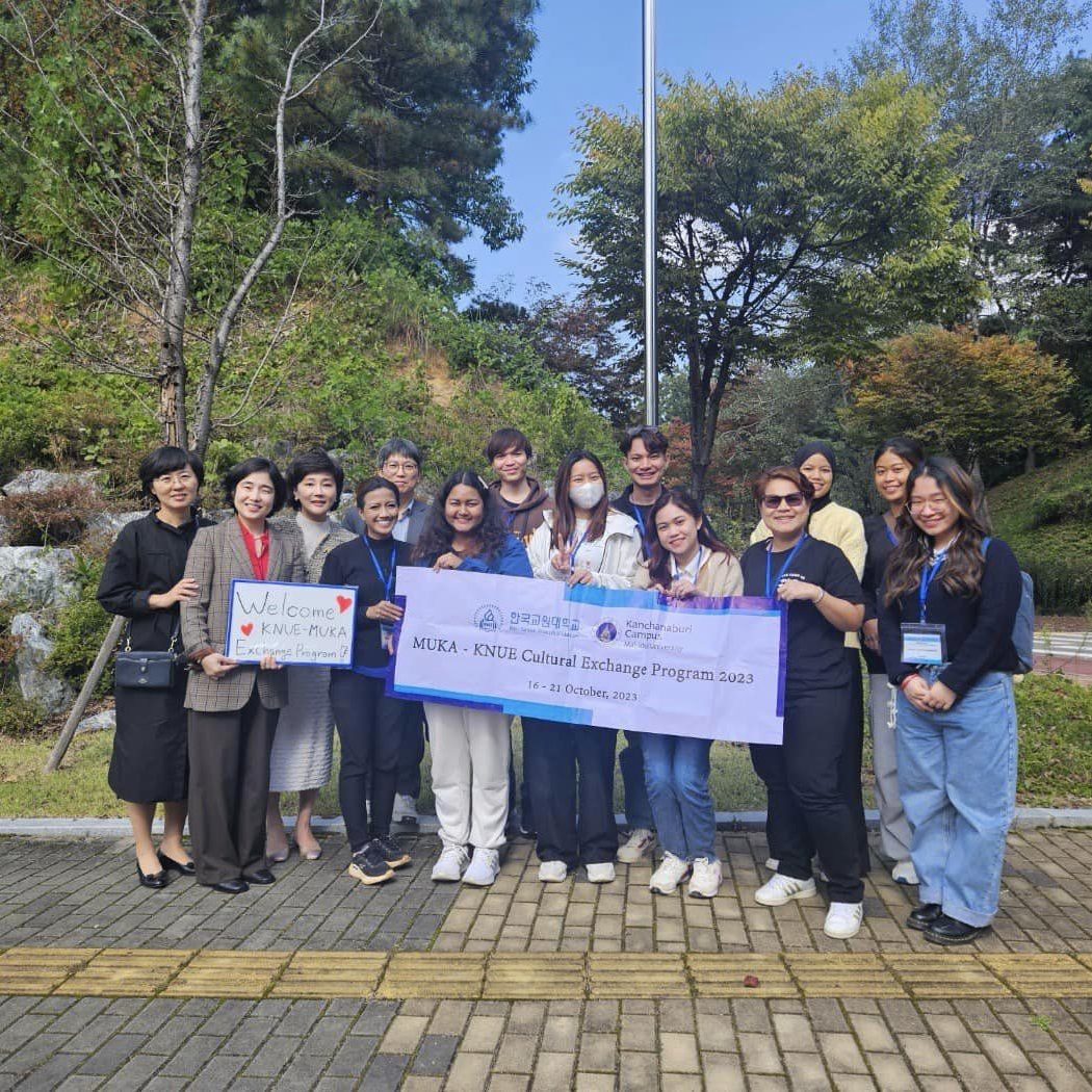 วันที่ 16 ตุลาคม 2566 คณะนักศึกษาวิทยาเขตกาญจนบุรี เดินทางเข้าร่วมกิจกรรมแลกเปลี่ยนด้านวัฒนธรรม “Short-term Student Exchange Program” ณ Korea National University of Education สาธารณรัฐเกาหลี ระหว่างวันที่ 16-21 ตุลาคม 2566 โดยมีอาจารย์ ดร.นิธิมา สุทะพินธ์ อาจารย์ประจำสาขาวิชาวิทยาศาสตร์และศิลปศาสตร์ เป็นอาจารย์ที่ปรึกษาให้กับนักศึกษาคณะดังกล่าว โดยได้รับเกียรติจาก Prof. Mihyun Kho, Global Teacher’s University team leader ให้การต้อนรับ พร้อมด้วย Ms. Jin A Choi, Section Chief of Department of International Affair and Ms. Un Ju Kim, Head of Department of International Affair อวยพรให้นักศึกษาจากวิทยาเขตกาญจนบุรีให้ได้รับประโยชน์และความรู้จากการเข้าร่วมโครงการแลกเปลี่ยนในครั้งนี้ ณ Korea National University of Education ซึ่งประกอบด้วยกิจกรรมการแลกเปลี่ยนด้านวัฒนธรรม ภาษาไทย-ภาษาเกาหลี และการเข้าเยี่ยมชมและทำกิจกรรมร่วมกับโรงเรียน Wallgok Elementary School เพื่อให้ความรู้ความเข้าใจเกี่ยวกับวัฒนธรรมไทยให้กับนักเรียนชั้นประถมศึกษา