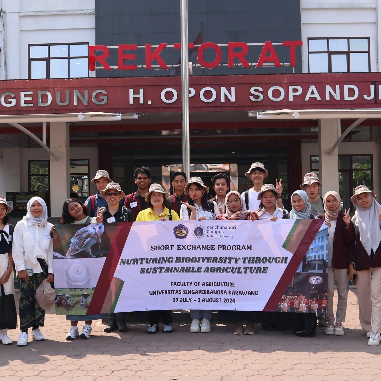 วันที่ 28 กรกฎาคม 2567 คณะนักศึกษาสาขาวิชาชีววิทยาเชิงอนุรักษ์ สาขาวิชาวิทยาศาสตร์การเกษตร และสาขาวิชาการบัญชี วิทยาเขตกาญจนบุรี เดินทางเข้าร่วมโครงการนักศึกษาแลกเปลี่ยน (ระยะสั้น) ด้านวิชาการ ณ University of Singaperbangsa Karawang (UNSIKA) สาธารณรัฐอินโดนีเซีย โดยมีอาจารย์ไพพรรณ แพเจริญ หัวหน้าสาขาวิชาชีววิทยาเชิงอนุรักษ์ และผู้ช่วยศาสตราจารย์ ดร.วีระชน สว่างเพราะ อาจารย์ประจำสาขาวิชาชีววิทยาเชิงอนุรักษ์ เป็นอาจารย์ที่ปรึกษา ในโอกาสนี้ ได้รับเกียรติจาก Prof. Dr. Ade Maman Suherman, S.H., M.Sc., The President of UNSIKA และ Prof. Dr. Sulistyo Sidik Purnomo, Ir., M.Si., Dean of the Faculty of Agriculture ให้การต้อนรับ ซึ่งกิจกรรมนี้มีวัตถุประสงค์เพื่อแลกเปลี่ยนความรู้ทางวิชาการระหว่างประเทศและเสริมสร้างทักษะด้านภาษาและประสบการณ์การเรียนรู้ด้านชีววิทยา โดยกิจกรรมแลกเปลี่ยนดังกล่าวจัดขึ้นในระหว่างวันที่ 28 กรกฎาคม – 3 สิงหาคม 2567