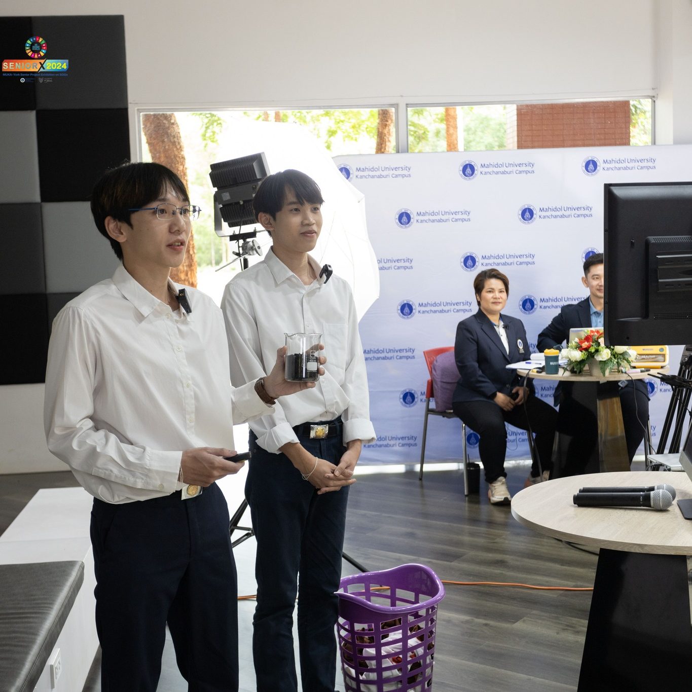 วันที่ 21 พฤษภาคม 2567 ผู้ช่วยศาสตราจารย์ ดร.ธัชวีร์ ลีละวัฒน์ รองอธิการบดีฝ่ายสารสนเทศและวิทยาเขตกาญจนบุรี เป็นประธานกล่าวเปิดกิจกรรมนำเสนอผลงานวิจัยระดับปริญญาตรี ประจำปี2567 (MUKA Senior Project Exhibition 2024) ภายใต้ Concept “MUKA-York Senior Project Exhibition on SDGs” ของนักศึกษาระดับปริญญาตรี ชั้นปีที่ 4 มหาวิทยาลัยมหิดล วิทยาเขตกาญจนบุรี โดยผู้ช่วยศาสตราจารย์ ดร.อำนาจ เจรีรัตน์ ผู้ช่วยอธิการบดีฝ่ายวิทยาเขตกาญจนบุรี ประธานการจัดงาน กล่าวรายงานวัตถุประสงค์ของกิจกรรม และในโอกาสนี้ ได้รับเกียรติจากผู้เชี่ยวชาญจาก University of York สหราชอาณาจักร เข้าร่วมรับฟังการบรรยาย และนักศึกษาจาก University of York รวมทั้งนักศึกษาจากวิทยาเขตอำนาจเจริญ มหาวิทยาลัยมหิดล เข้าร่วมนำเสนอผลงานในครั้งนี้ภายใต้แนวคิดการผลิตบัณฑิตที่ตอบสนองเป้าหมายการพัฒนาอย่างยั่งยืน (Sustainable Development Goal: SDGs) โดยมีวัตถุประสงค์เพื่อให้นักศึกษาในแต่ละหลักสูตรเกิดการแลกเปลี่ยนเรียนรู้แบบบูรณาการ ในวิทยาการต่างสาขานอกเหนือจากสาขาตนเอง อีกทั้งยังได้พัฒนาทักษะการสื่อสารผ่านการปฏิบัติจริง ซึ่งนักศึกษาในแต่ละหลักสูตรต้องแสดงความสามารถในการนำเสนอผลงานวิจัยเป็นภาษาอังกฤษ โดยการนำเสนอผลงานในครั้งนี้ นอกจากจะเป็นการเติมเต็มทักษะทางด้านวิชาการและวิชาชีพของนักศึกษาแล้ว ยังเป็นการเติมเต็มทักษะทางด้าน Digital Literacy ตามนโยบายของมหาวิทยาลัยมหิดล อย่างต่อเนื่อง