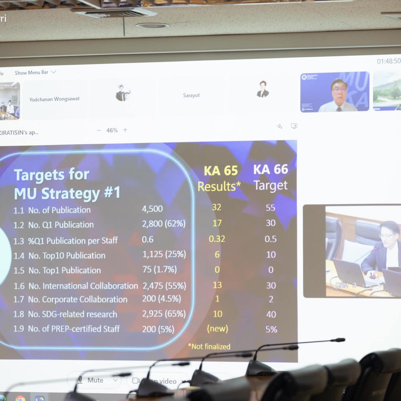 อธิการบดีและคณะผู้บริหาร มหาวิทยาลัยมหิดล เข้ารับฟังข้อตกลงการปฏิบัติงานของส่วนงาน (PA-Visit) ประจำปีงบประมาณ 2566 มหาวิทยาลัยมหิดล วิทยาเขตกาญจนบุรี