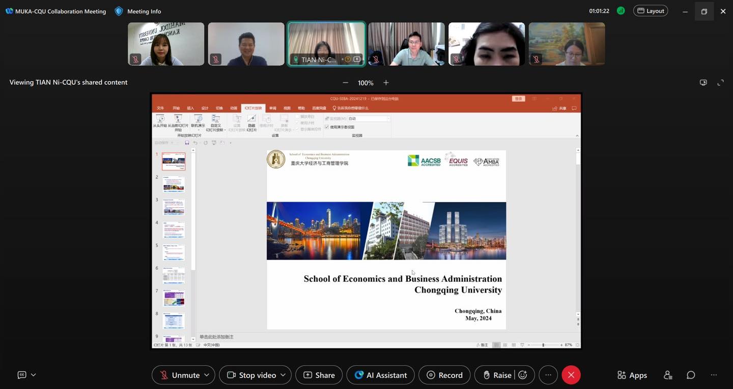 การประชุมหารือความร่วมมือทางวิชาการและวัฒนธรรมร่วมกับ School of Economics and Business Administration (SEBA), Chongqing University สาธารณรัฐประชาชนจีน