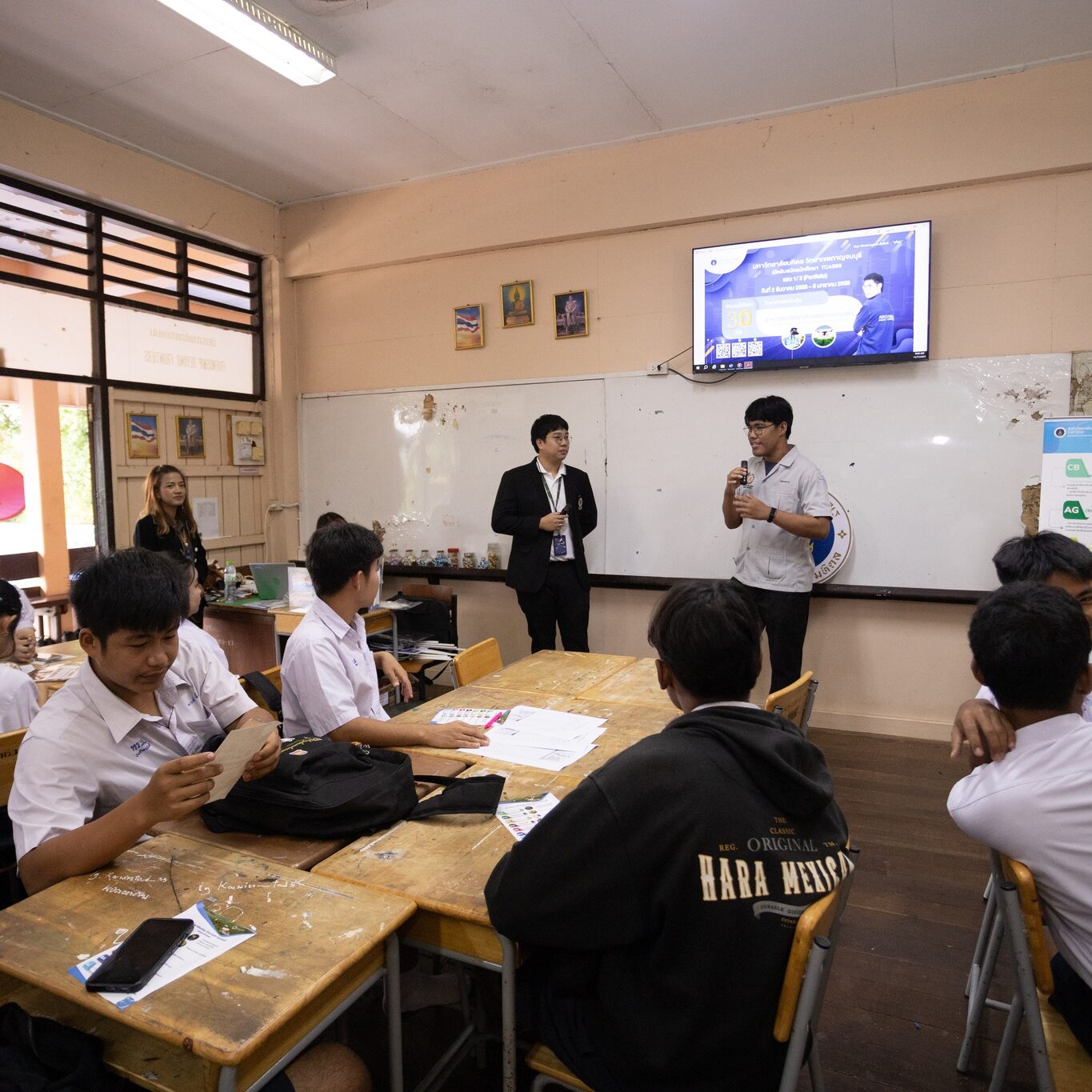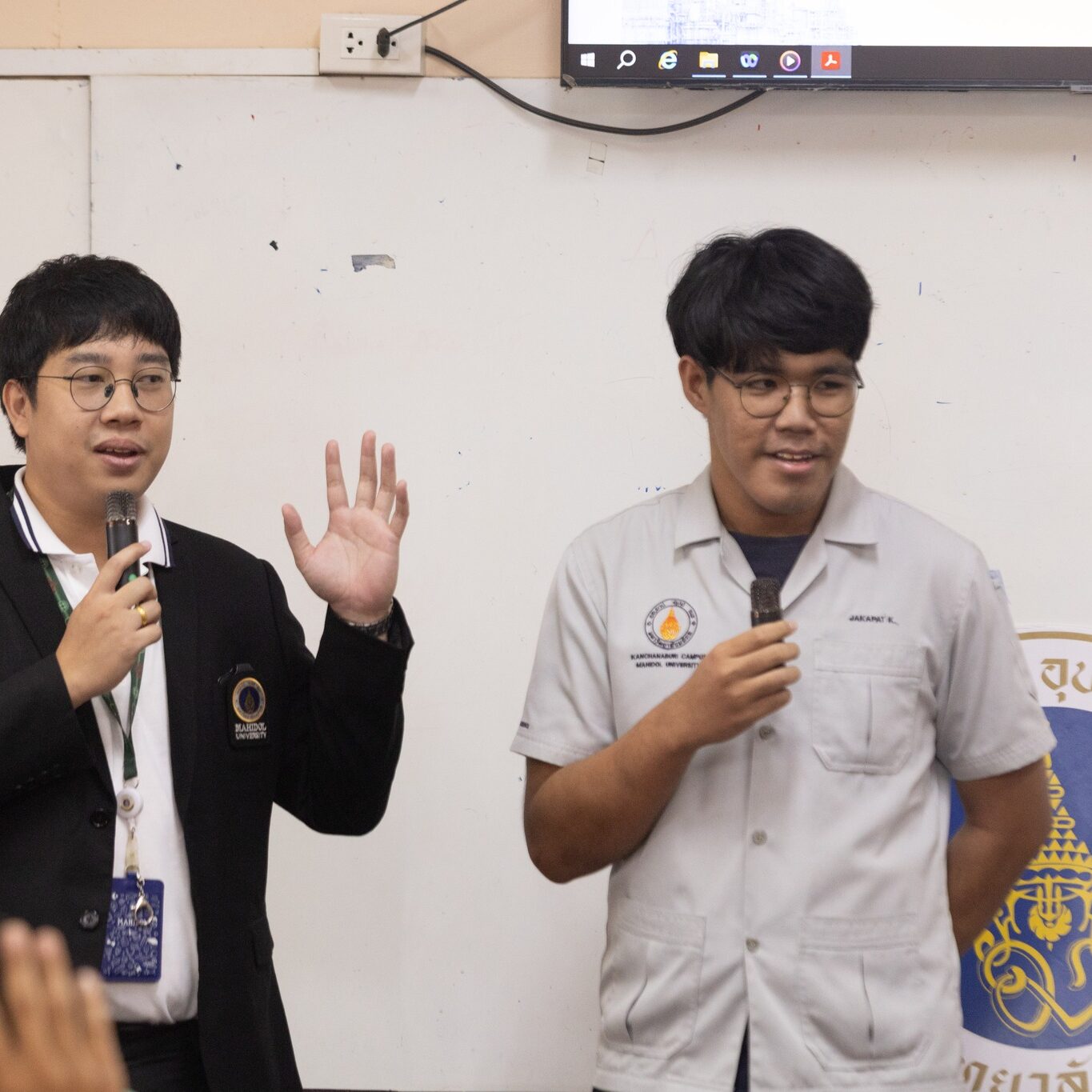 วันที่ 17 พฤศจิกายน 2568 อาจารย์และนักศึกษาสาขาวิชาวิทยาศาสตร์การเกษตร พร้อมด้วยบุคลากรงานวิเทศสัมพันธ์และสื่อสารองค์กร จัดกิจกรรมประชาสัมพันธ์หลักสูตร เพื่อแนะนำการเข้าศึกษาต่อระดับปริญญาตรีให้กับนักเรียนระดับชั้นมัธยมศึกษาปีที่ 6 โรงเรียนไทรโยคมณีกาญจน์วิทยา และเพื่อให้นักเรียนได้รับรู้เกี่ยวกับข้อมูล 7 สาขาวิชาที่เปิดการเรียนการสอนที่วิทยาเขตกาญจนบุรี ซึ่งจะเป็นแนวทางในการเตรียมความพร้อมและการตัดสินใจในการสมัครเรียนต่อในระดับปริญญาตรี โดยได้รับเกียรติจากอาจารย์ไชยพร มะลิลา ผู้อำนวยการโรงเรียนไทรโยคมณีกาญจน์ และอาจารย์สำลี สายหยุด หัวหน้ากลุ่มงานแนะแนว ให้การต้อนรับและอำนวยความสะดวกในการจัดกิจกรรม ณ โรงเรียนไทรโยคมณีกาญจน์วิทยา อำเภอไทรโยค จังหวัดกาญจนบุรี