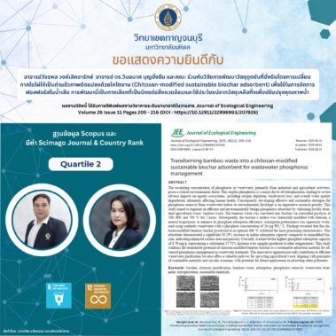 ขอแสดงความยินดีกับนักวิจัยวิทยาเขตกาญจนบุรี เนื่องในโอกาสได้รับการตีพิมพ์ผลงานวิชาการในวารสารระดับนานาชาติที่ปรากฎในฐานข้อมูล Scopus ประจำเดือนมิถุนายน – ตุลาคม 2568