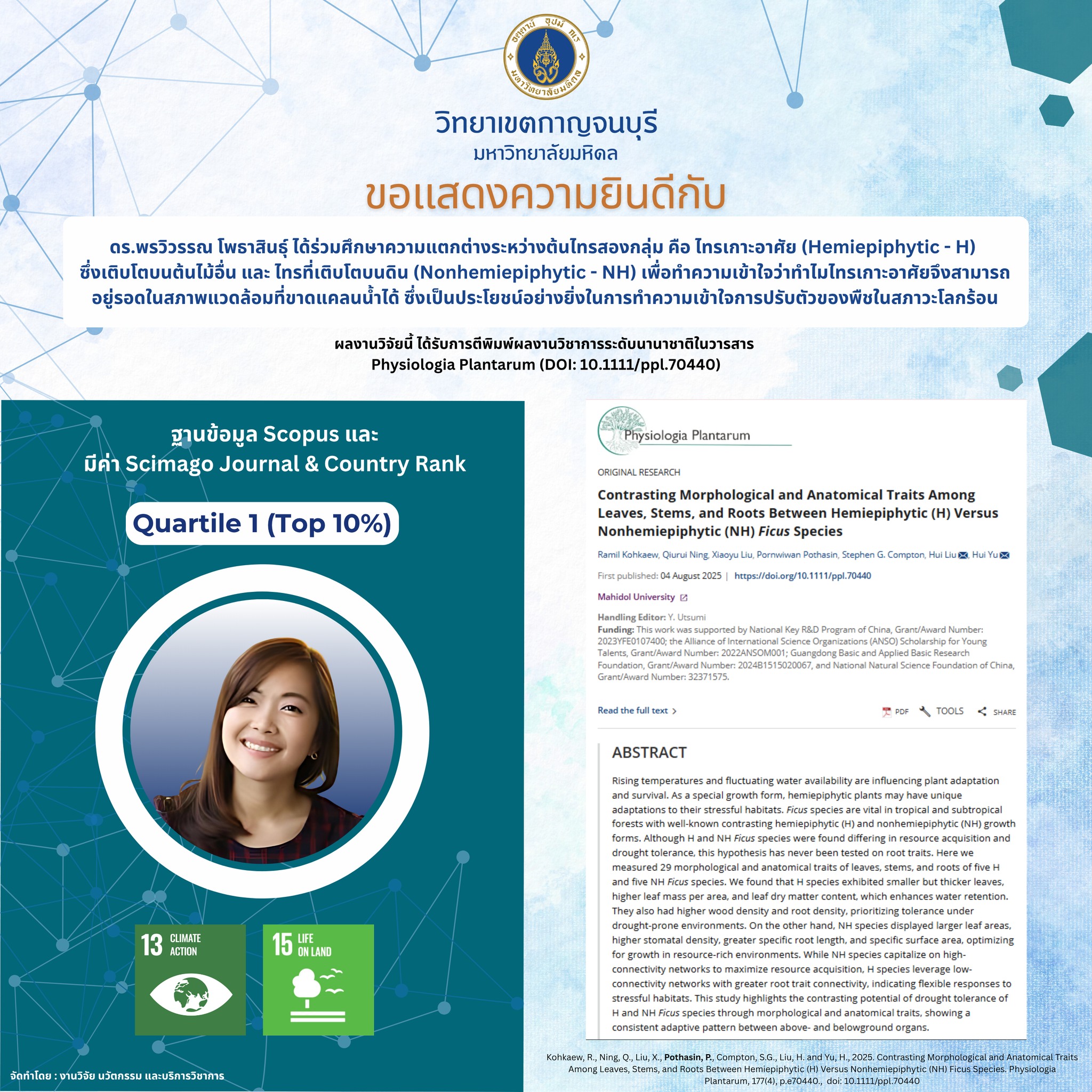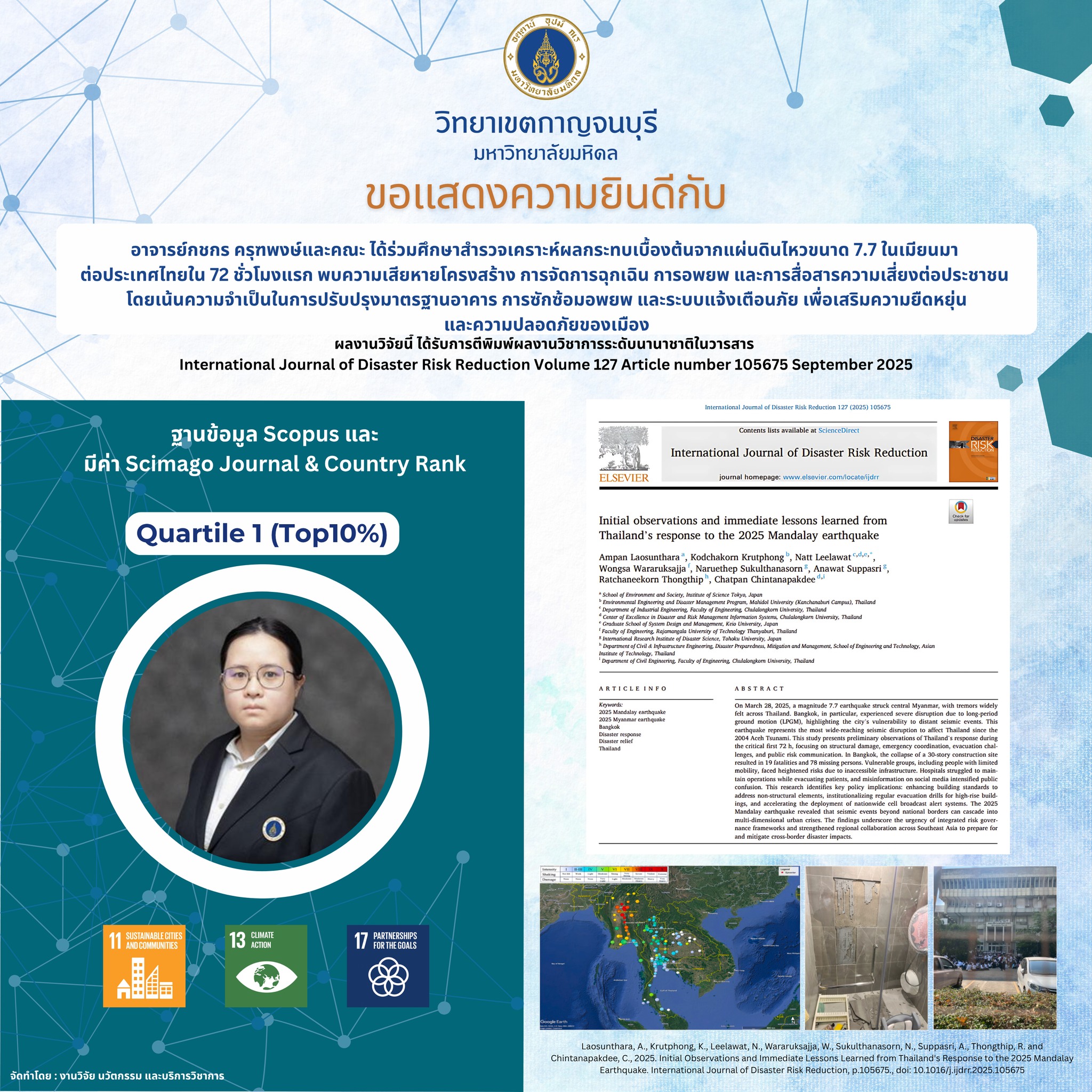 ขอแสดงความยินดีกับนักวิจัยวิทยาเขตกาญจนบุรี เนื่องในโอกาสได้รับการตีพิมพ์ผลงานวิชาการในวารสารระดับนานาชาติที่ปรากฎในฐานข้อมูล Scopus ประจำเดือนมิถุนายน – ตุลาคม 2568