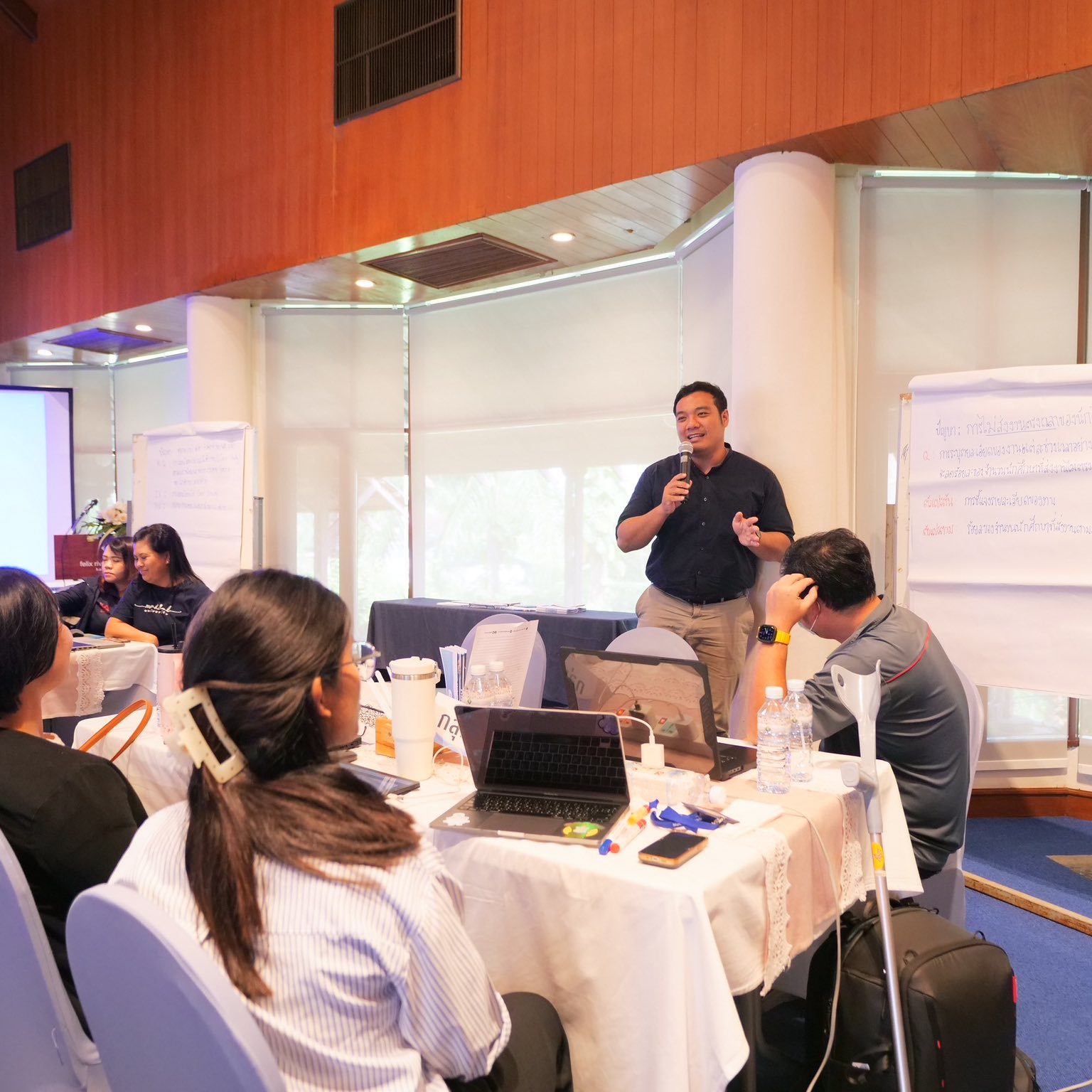 วันที่ 4 มิถุนายน 2568 ผู้ช่วยศาสตราจารย์ ดร.วราภรณ์ ตรีพรหม ผู้ช่วยรองอธิการบดีฝ่ายวิทยาเขตกาญจนบุรี ด้านแผนและวิจัย เป็นประธานเปิดการอบรมเชิงปฏิบัติการพื้นฐานการวิจัยทางการศึกษาเชิงคุณภาพและเชิงปริมาณ สำหรับบุคลากรกลุ่มสาขาวิชาสหวิทยาการ วิทยาเขตกาญจนบุรี มหาวิทยาลัยมหิดล โดยการอบรมในครั้งนี้จัดขึ้นเพื่อให้ผู้เข้าร่วมอบรมได้เรียนรู้ลักษณะทั่วไปและความสำคัญของปัญหาวิจัยทางการศึกษา การทบทวนวรรณกรรม เข้าใจเกี่ยวกับวิจัยการศึกษาเชิงปริมาณ วิจัยการศึกษาเชิงคุณภาพ เครื่องมือในการวิจัยและการตรวจสอบคุณภาพ และตัวอย่างในการวิจัยทางการศึกษา โดยได้รับเกียรติจาก ดร.เกียรติยศ กุลเดชชัยชาญ และดร.ศุภกิจ บุญเอนกพัฒน์ ศูนย์ความเป็นเลิศด้านการศึกษาวิทยาศาสตร์สุขภาพ คณะแพทยศาสตร์ศิริราชพยาบาล เป็นวิทยากรบรรยายให้ความรู้ จัดขึ้นในระหว่างวันที่ 4 – 5 มิถุนายน 2568 ณ ห้องประชุมกุ้ยหลิน โรงแรมเฟลิกซ์ ริเวอร์แคว รีสอร์ท จังหวัดกาญจนบุรี