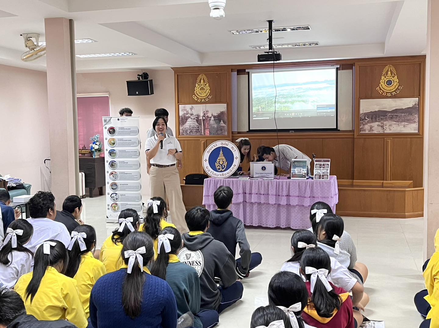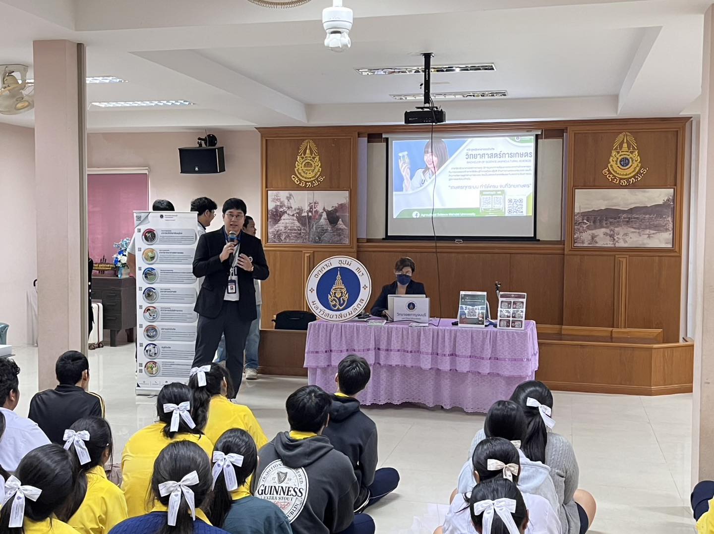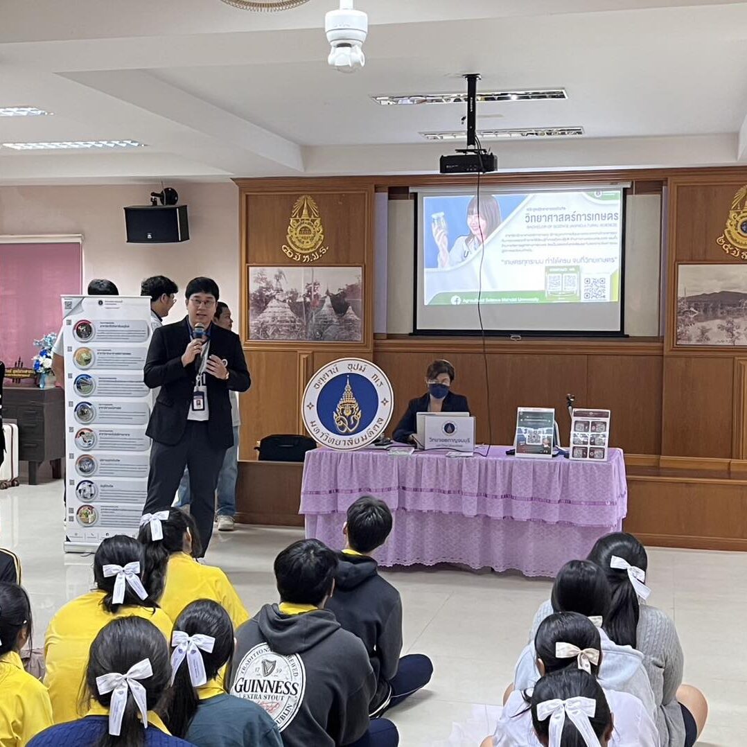 วันที่ 12 ธันวาคม 2568 คณาจารย์สาขาวิชาธรณีศาสตร์, สาขาวิชาวิทยาศาสตร์การเกษตร พร้อมด้วยนักศึกษา และบุคลากรงานวิเทศสัมพันธ์และสื่อสารองค์กร จัดกิจกรรมประชาสัมพันธ์หลักสูตร เพื่อแนะนำการเข้าศึกษาต่อระดับปริญญาตรีให้กับนักเรียนระดับชั้นมัธยมศึกษาปีที่ 6 แผนการเรียนคณิตศาสตร์-วิทยาศาสตร์ โรงเรียนท่าม่วงราษฎร์บำรุง และเพื่อให้นักเรียนได้รับรู้เกี่ยวกับข้อมูล 7 สาขาวิชาที่เปิดการเรียนการสอนที่วิทยาเขตกาญจนบุรี ซึ่งจะเป็นแนวทางในการเตรียมความพร้อมและการตัดสินใจในการสมัครเรียนต่อในระดับปริญญาตรี โดยได้รับเกียรติจากอาจารย์กนกวรรณ สาระศาลิน อาจารย์แนะแนวให้การต้อนรับและอำนวยความสะดวกในการจัดกิจกรรม ณ ห้องแนะแนว (เจริญคชวัตร) โรงเรียนท่าม่วงราษร์บำรุง อำเภอท่าม่วง จังหวัดกาญจนบุรี