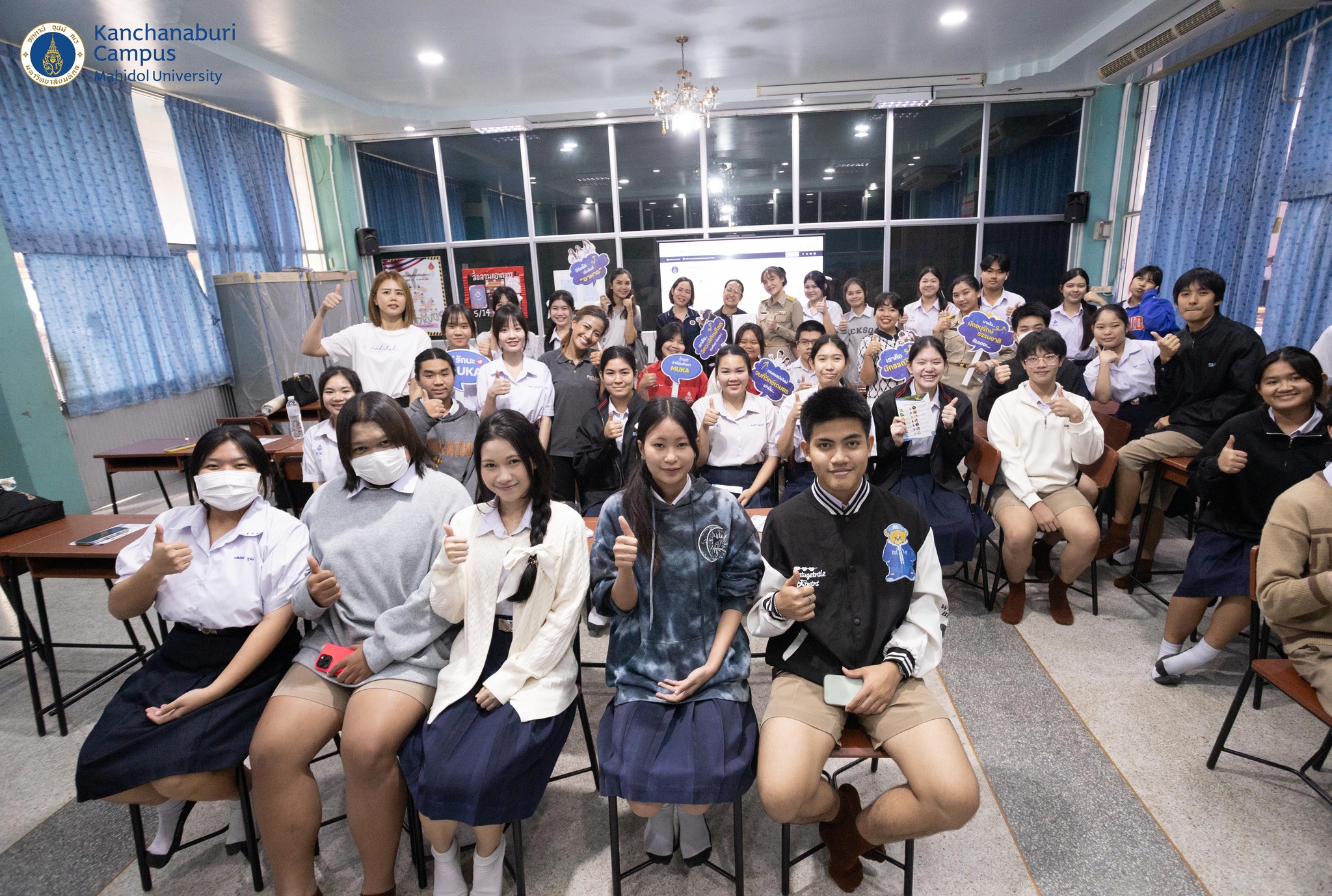 วันที่ 8 ธันวาคม 2568 คณาจารย์สาขาวิชาธรณีศาสตร์, สาขาวิชาวิศวกรรมสิ่งแวดล้อมและการจัดการภัยพิบัติ และสาขาวิชาเทคโนโลยีการอาหาร พร้อมด้วยศิษย์เก่า และบุคลากรงานวิเทศสัมพันธ์และสื่อสารองค์กร จัดกิจกรรมประชาสัมพันธ์หลักสูตร เพื่อแนะนำการเข้าศึกษาต่อระดับปริญญาตรีให้กับนักเรียนระดับชั้นมัธยมศึกษาปีที่ 6 แผนการเรียนคณิตศาสตร์-วิทยาศาสตร์, แผนการเรียนอังกฤษ-จีน และแผนการเรียนเตรียมวิศวะฯ โรงเรียนกาญจนานุเคราะห์ และเพื่อให้นักเรียนได้รับรู้เกี่ยวกับข้อมูล 7 สาขาวิชาที่เปิดการเรียนการสอนที่วิทยาเขตกาญจนบุรี ซึ่งจะเป็นแนวทางในการเตรียมความพร้อมและการตัดสินใจในการสมัครเรียนต่อในระดับปริญญาตรี โดยได้รับเกียรติจากอาจารย์โยธกาญจน์ คุณานุรักษ์, อาจารย์ณิชากานต์ น่วมนิ่ม พร้อมคณาจารย์กลุ่มงานแนะแนว ให้การต้อนรับและอำนวยความสะดวกในการจัดกิจกรรม ณ ห้องแนะแนว โรงเรียนกาญจนานุเคราะห์ อำเภอเมือง จังหวัดกาญจนบุรี
