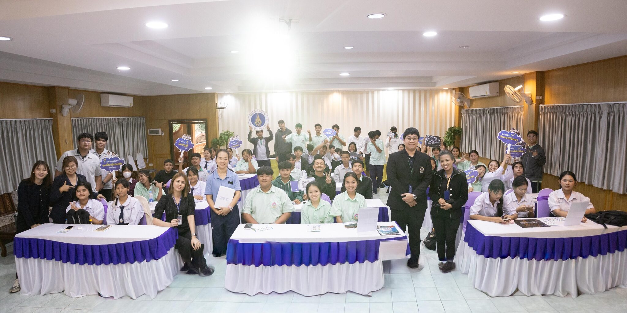 วันที่ 17 ธันวาคม 2568 คณาจารย์และนักศึกษาสาขาวิชาวิทยาศาสตร์การเกษตร พร้อมด้วยบุคลากรงานวิเทศสัมพันธ์และสื่อสารองค์กร จัดกิจกรรมประชาสัมพันธ์หลักสูตร เพื่อแนะนำการเข้าศึกษาต่อระดับปริญญาตรีให้กับนักเรียนระดับชั้นมัธยมศึกษาปีที่ 6 โรงเรียนไทรโยคน้อยวิทยา และเพื่อให้นักเรียนได้รับรู้เกี่ยวกับข้อมูล 7 สาขาวิชาที่เปิดการเรียนการสอนที่วิทยาเขตกาญจนบุรี ซึ่งจะเป็นแนวทางในการเตรียมความพร้อมและการตัดสินใจในการสมัครเรียนต่อในระดับปริญญาตรี โดยได้รับเกียรติจากอาจารย์ชาลิตา สุขสำราญ พร้อมอาจารย์กลุ่มงานแนะแนว ให้การต้อนรับและอำนวยความสะดวกในการจัดกิจกรรม ณ ห้องราชาวดี โรงเรียนไทรโยคน้อยวิทยา อำเภอไทรโยค จังหวัดกาญจนบุรี
