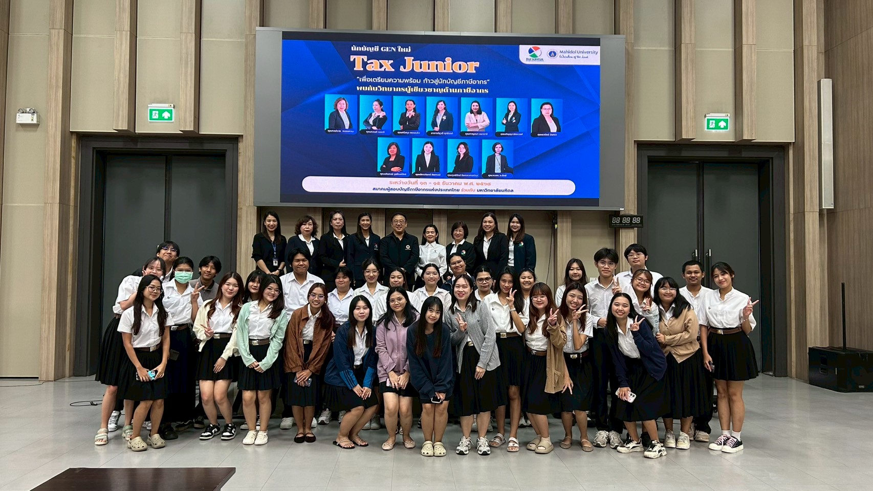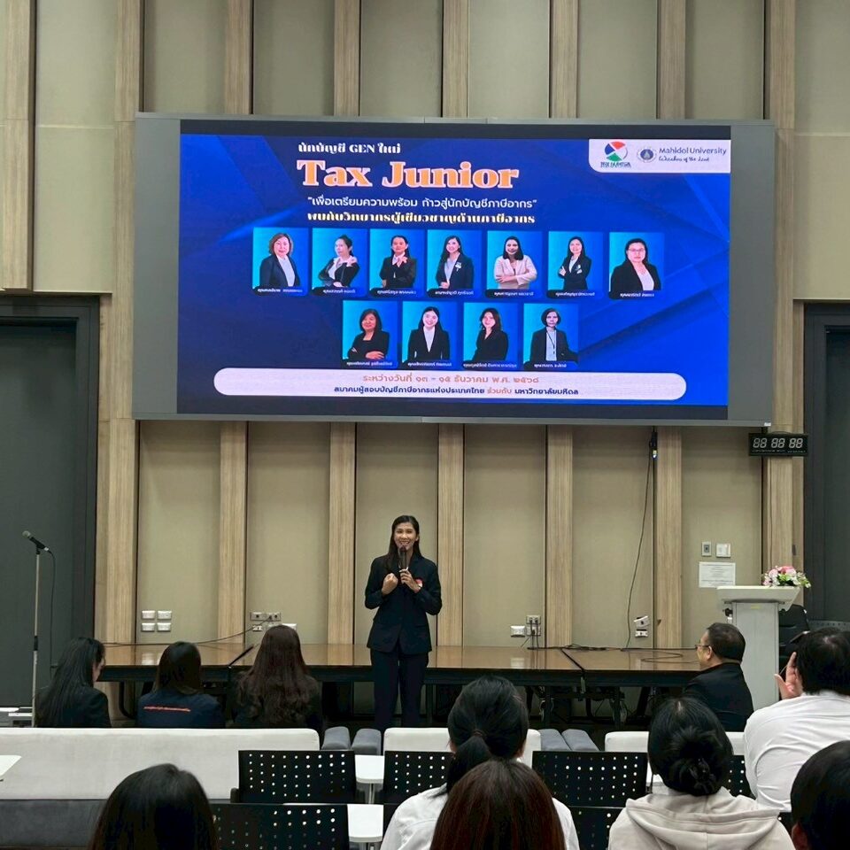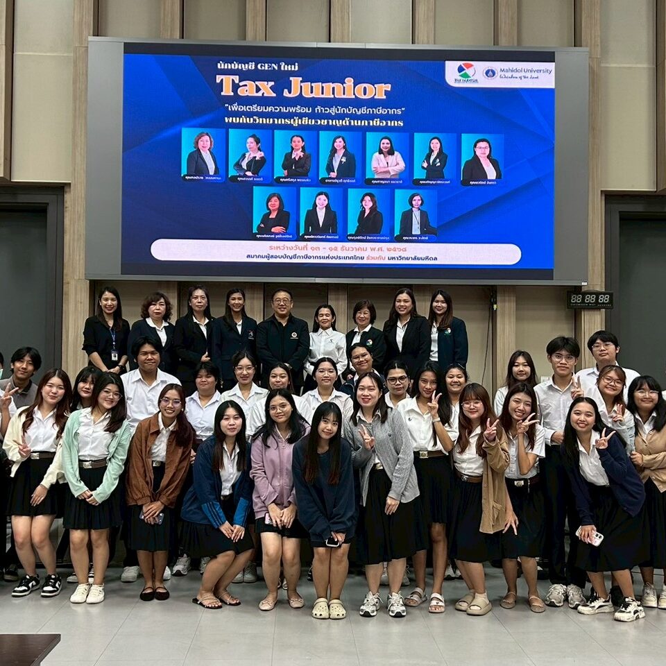 มหาวิทยาลัยมหิดล วิทยาเขตกาญจนบุรี ร่วมกับ สมาคมผู้สอบบัญขีภาษีอากรแห่งประเทศไทย ได้จัดกิจกรรมอบรมเชิงปฏิบัติการ “TAX JUNIOR 2568” ระหว่างวันที่ 13–15 ธันวาคม 2568 ณ มหาวิทยาลัยมหิดล ศาลายา เพื่อพัฒนาความรู้และทักษะด้านภาษีอากรที่จำเป็นต่อการทำงานจริงให้แก่นักศึกษา