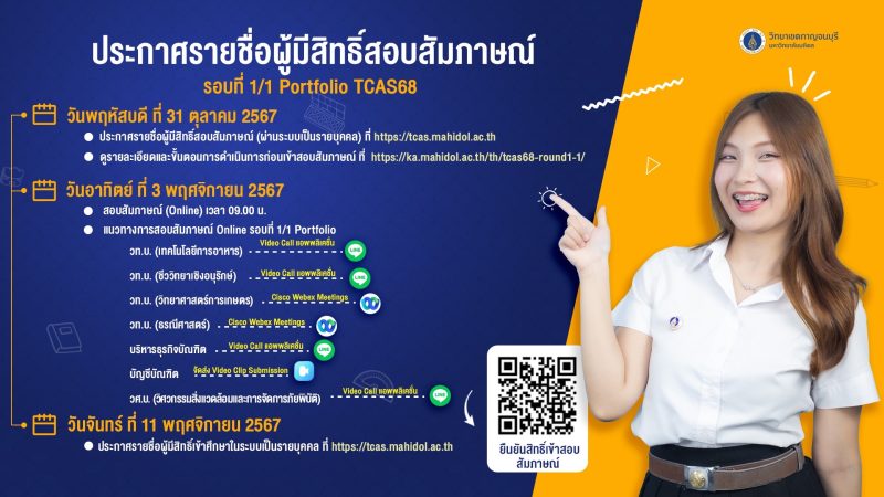- สำหรับผู้ผ่านเกณฑ์และมีสิทธิ์สอบสัมภาษณ์ออนไลน์ รอบที่ 1/1 (Portfolio)