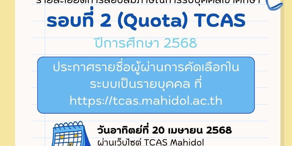 รอบที่ 2 (Quota) ระบบ TCAS ปีการศึกษา 2568
