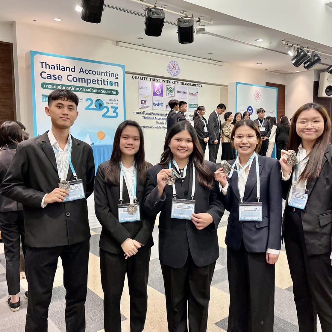 ขอแสดงความยินดีกับนักศึกษาสาขาวิชาบัญชี เนื่องในโอกาสได้รับรางวัลการแข่งขันกรณีศึกษาทางบัญชีระดับประเทศ ครั้งที่ 7 ประจำปี 2566 “Thailand Accounting Case Competition 2023”