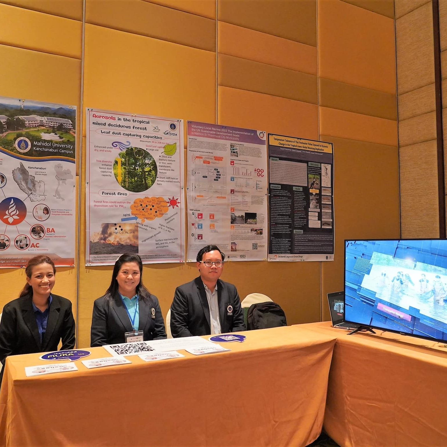 วันที่ 22 กรกฎาคม 2566 ผู้ช่วยศาสตราจารย์ ดร.ธัชวีร์ ลีละวัฒน์ รองอธิการบดีฝ่ายสารสนเทศและวิทยาเขตกาญจนบุรี ได้รับเกียรติกล่าวเปิดงานประชุมวิชาการระดับนานาชาติ The 9th Theory & Technique and International Aerosol Conference (The 9th T&T IAC) พร้อมด้วย Prof. Chih-Chieh Chen President of Asian Aerosol Research Assembly (AARA) ร่วมกล่าวเปิดงาน ซึ่งจัดขึ้นโดยภาควิชาวิศวกรรมเคมี คณะวิศวกรรมศาสตร์ มหาวิทยาลัยมหิดล ภาควิชาวิศวกรรมเคมี คณะวิศวกรรมศาสตร์ จุฬาลงกรณ์มหาวิทยาลัย และสมาคมวิศวกรรมเคมีและเคมีประยุกต์แห่งประเทศไทย(TIChE) ร่วมกับ Taiwan Association for Aerosol Research(TAAR) ในการประชุมแลกเปลี่ยนความรู้ทางวิชาการและงานวิจัยในหัวข้อ Aerosol Science and Nanotechnology for Carbon Neutrality Society และในโอกาสนี้ผู้ช่วยศาสตราจารย์ ดร.วราภรณ์ ตรีพรหม ผู้ช่วยรองอธิการบดีฝ่ายวิทยาเขตกาญจนบุรี ด้านวิจัยและนวัตกรรม และผู้ช่วยศาสตราจารย์ ดร.นงนุช สังข์อยุทธ์ ผู้ช่วยรองอธิการบดีฝ่ายวิทยาเขตกาญจนบุรี ด้านบริการสังคมและชุมชนสัมพันธ์ พร้อมด้วยคณาจารย์และบุคลากรงานวิจัย นวัตกรรมและบริการวิชาการ และงานวิเทศสัมพันธ์และสื่อสารองค์กร เข้าร่วมงานและจัดบูธประชาสัมพันธ์ ณ ไมด้ารีสอร์ท จังหวัดกาญจนบุรี