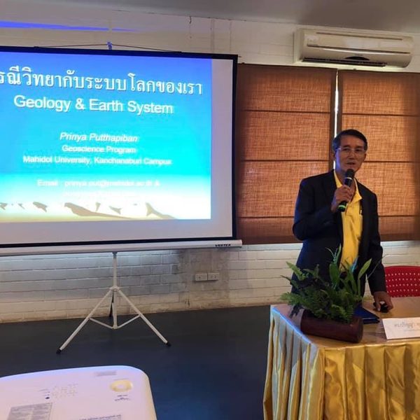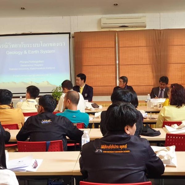 ตามที่ มหาวิทยาลัยมหิดล วิทยาเขตกาญจนบุรี ได้ทำบันทึกข้อตกลงความร่วมมือทางวิชาการกับสถาบันส่งเสริมการสอนวิทยาศาสตร์และเทคโนโลยี (สสวท.) กระทรวงศึกษาธิการ เพื่อสนับสนุนการจัดการโครงการเรื่อง “โครงการอบรมครูเชิงปฏิบัติการด้านธรณีศาสตร์ ประจำปี 2562” เพื่อพัฒนาศักยภาพสำหรับครูผู้สอนและบุคลากรทางการศึกษา ได้รับการฝึกปฏิบัติโดยตรงกับผู้เชี่ยวชาญด้านธรณีศาสตร์ นำความรู้ไปพัฒนาสื่อการสอนและกิจกรรมส่งเสริมการสอน ให้มีประสิทธิภาพมากยิ่งขึ้น นั้น มีผู้ร่วมการอบรมดังนี้ รุ่นที่ 1 ระหว่างวันที่ 8-13 พฤษภาคม 2562 จำนวน 40 คน รุ่นที่ 2 ระหว่างวันที่ 20-25 พฤษภาคม 2562 จำนวน 48 คน ซึ่งเป็นบุคลากรครูจากสถาบันการศึกษาทั่วประเทศรวม 62 โรงเรียนจาก 34 จังหวัด ในกลุ่มสาระการเรียนรู้ด้านวิทยาศาสตร์โลก ดาราศาสตร์ และอวกาศ ซึ่งเน้นการบูรณาการองค์ความรู้ด้านธรณีวิทยาร่วมกับวิทยาศาสตร์แขนงอื่นๆ ให้มีความรู้ความเข้าใจธรรมชาติของโลก ความเป็นมาในอดีตและแนวโน้มการเปลี่ยนแปลงในอนาคต การกำเนิดทรัพยากรธรณี ปรากฏการณ์ทางธรรมชาติต่างๆ ซึ่งการอบรมจะมีทั้งภาคทฤษฏี ภาคปฏิบัติ และเผชิญกับตัวอย่างจริงในภาคสนาม เพื่อให้เกิดความเชี่ยวชาญต่อไป