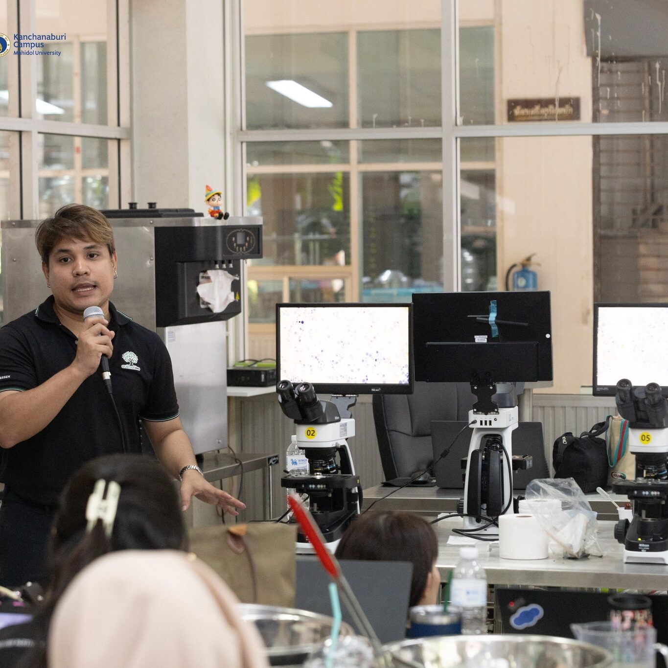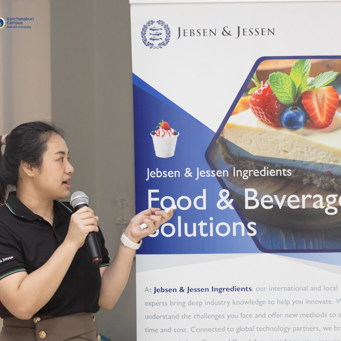 วันที่ 12 พฤศจิกายน 2568 สาขาวิชาเทคโนโลยีการอาหาร มหาวิทยาลัยมหิดล วิทยาเขตกาญจนบุรี ร่วมกับบริษัท Jebsen & Jessen Ingredients (T) Ltd. จัดกิจกรรม University Roadshow ด้านอุตสาหกรรมอาหาร (Food Ingredients) เพื่อส่งเสริมความรู้ให้แก่นักศึกษาสาขาวิชาเทคโนโลยีการอาหารชั้นปีที่ 3-4 และผู้ที่สนใจเกี่ยวกับอุตสาหกรรมอาหารและการใช้ Food Ingredients ซึ่งเป็นประโยชน์สำหรับนักศึกษาและต่อยอดการทำงานในอนาคต โดยทีมวิทยากรได้รับเกียรติจากบริษัท Jebsen & Jessen Ingredients (T) Ltd. จัดบรรยายพิเศษในหัวข้อ “Food Starch Technology and Workshop (Basic Starch Training)” และหัวข้อ “Food Starch Technology” พร้อมฝึกปฎิบัติการ Workshop การทดลองทำ Yoghurt filling และน้ำจิ้มไก่ เพื่อให้เห็นความแตกต่างของชนิดแป้ง ซึ่งกิจกรรมดังกล่าว นอกจากจะเป็นประโยชน์ในการเพิ่มพูนความรู้ให้กับนักศึกษา ยังเป็นความร่วมมือในการเชื่อมโยงภาคอุตสาหกรรมร่วมกับสถาบันการศึกษาอย่างยั่งยืน ณ อาคารเรียนรวม วิทยาเขตกาญจนบุรี
