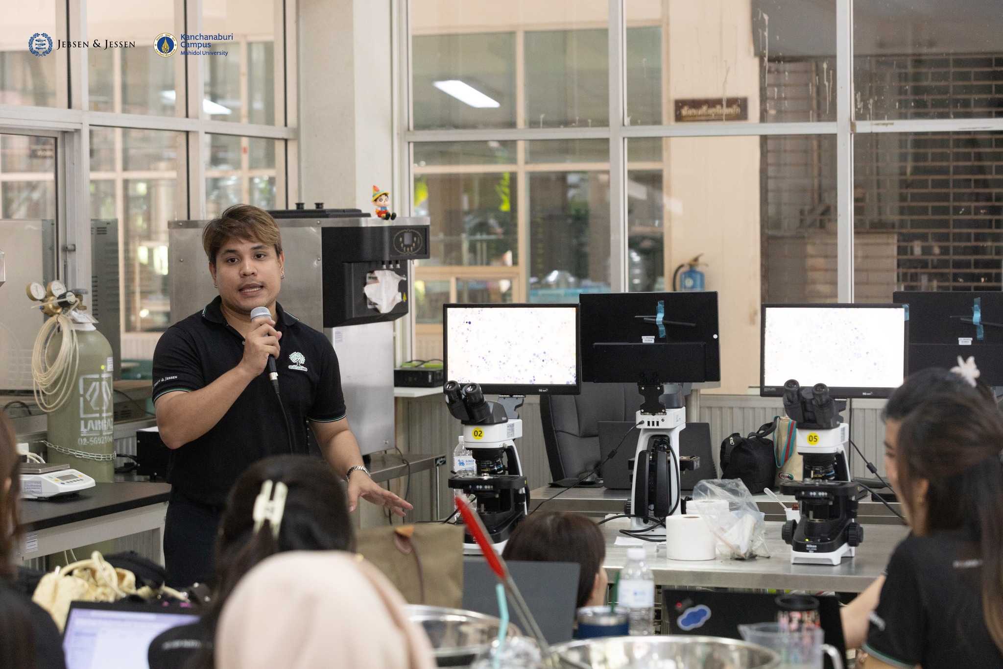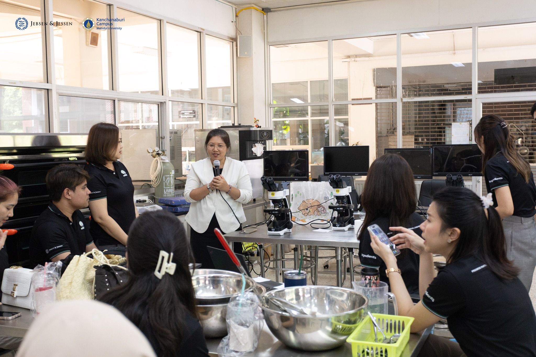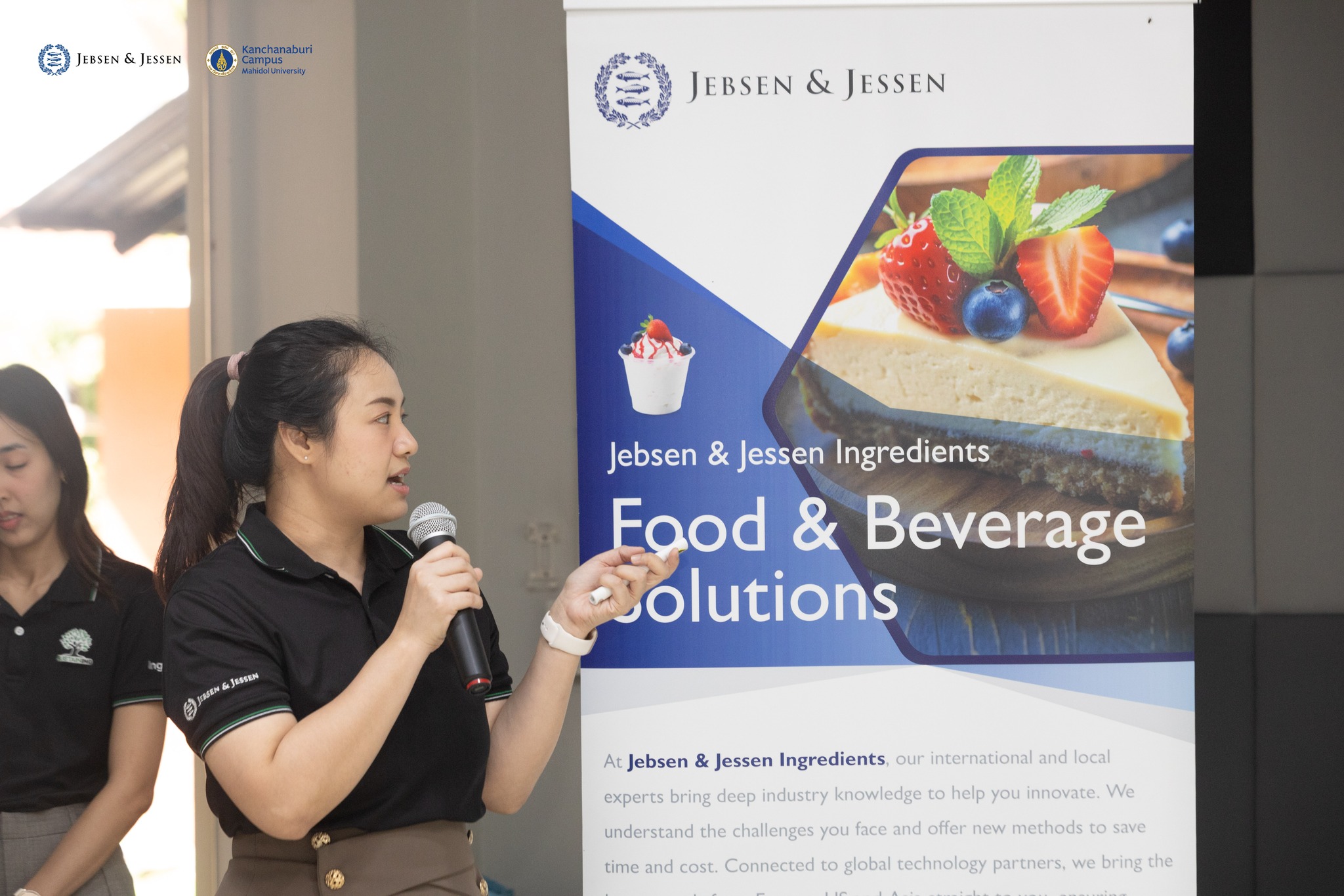 วันที่ 12 พฤศจิกายน 2568 สาขาวิชาเทคโนโลยีการอาหาร มหาวิทยาลัยมหิดล วิทยาเขตกาญจนบุรี ร่วมกับบริษัท Jebsen & Jessen Ingredients (T) Ltd. จัดกิจกรรม University Roadshow ด้านอุตสาหกรรมอาหาร (Food Ingredients) เพื่อส่งเสริมความรู้ให้แก่นักศึกษาสาขาวิชาเทคโนโลยีการอาหารชั้นปีที่ 3-4 และผู้ที่สนใจเกี่ยวกับอุตสาหกรรมอาหารและการใช้ Food Ingredients ซึ่งเป็นประโยชน์สำหรับนักศึกษาและต่อยอดการทำงานในอนาคต โดยทีมวิทยากรได้รับเกียรติจากบริษัท Jebsen & Jessen Ingredients (T) Ltd. จัดบรรยายพิเศษในหัวข้อ “Food Starch Technology and Workshop (Basic Starch Training)” และหัวข้อ “Food Starch Technology” พร้อมฝึกปฎิบัติการ Workshop การทดลองทำ Yoghurt filling และน้ำจิ้มไก่ เพื่อให้เห็นความแตกต่างของชนิดแป้ง ซึ่งกิจกรรมดังกล่าว นอกจากจะเป็นประโยชน์ในการเพิ่มพูนความรู้ให้กับนักศึกษา ยังเป็นความร่วมมือในการเชื่อมโยงภาคอุตสาหกรรมร่วมกับสถาบันการศึกษาอย่างยั่งยืน ณ อาคารเรียนรวม วิทยาเขตกาญจนบุรี