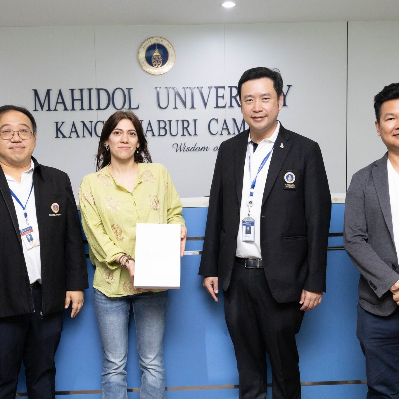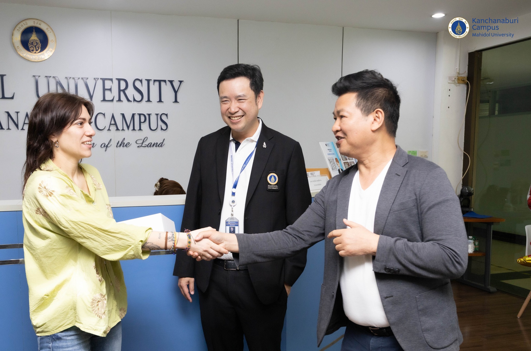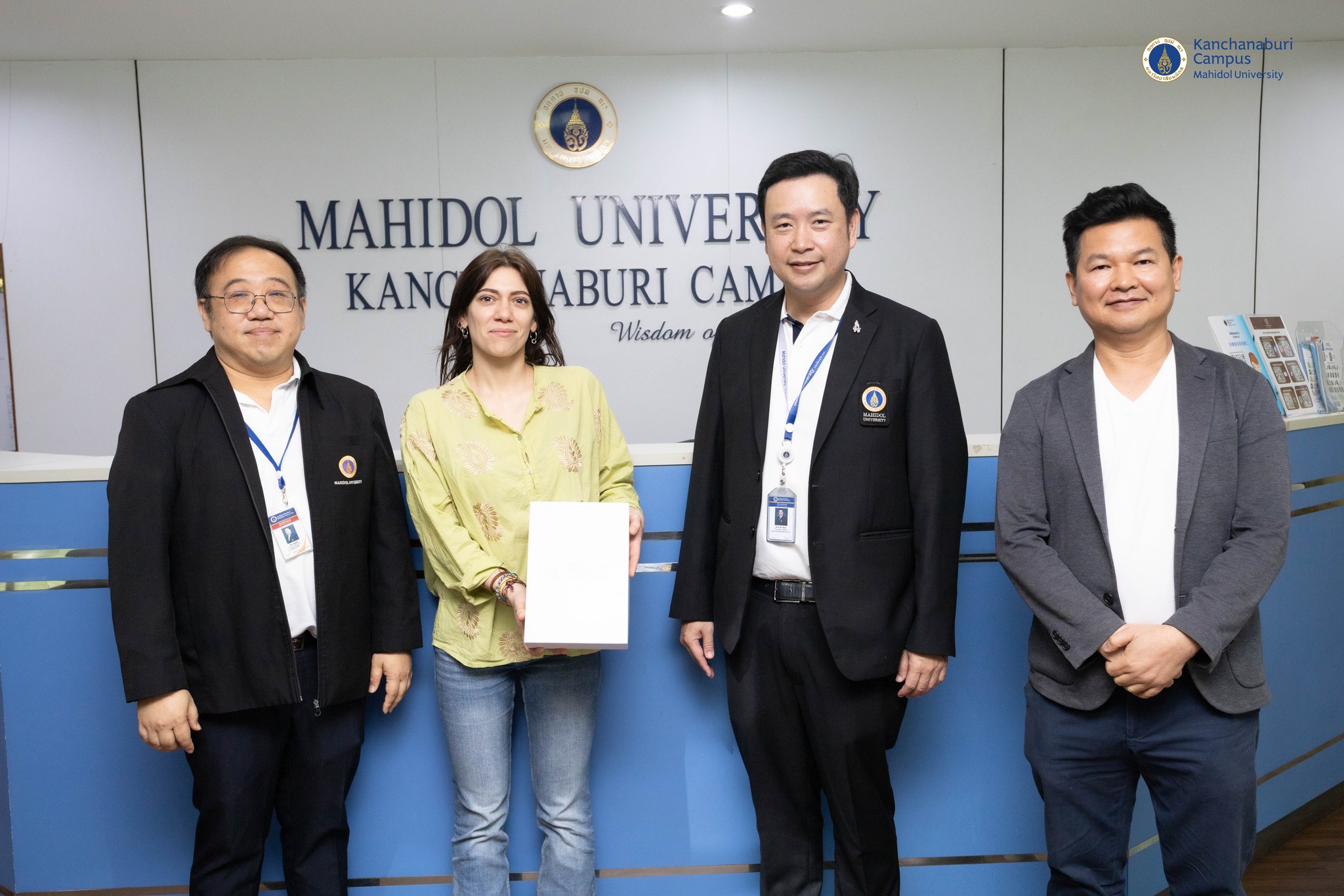 วันที่ 13 มกราคม 2569 ผู้ช่วยศาสตราจารย์ ดร.ธัชวีร์ ลีละวัฒน์ รองอธิการบดีฝ่ายวิทยาเขตกาญจนบุรี พร้อมด้วยผู้ช่วยศาสตราจารย์ ดร.อำนาจ เจรีรัตน์ ผู้ช่วยอธิการบดีฝ่ายวิทยาเขตกาญจนบุรี และผู้ช่วยศาสตราจารย์ ดร.วัชระ จินตโกวิท ผู้ช่วยรองอธิการบดีฝ่ายวิทยาเขตกาญจนบุรี ด้านการศึกษา ให้การต้อนรับ Ms.Gaia Moretti นักศึกษาแลกเปลี่ยนระดับปริญญาเอกจาก Department of Agricultural and Food Sciences (DISTAL), University of Bologna Alma Mater Studio rum สาธารณรัฐอิตาลี ภายใต้การดูแลโดย ผู้ช่วยศาสตราจารย์ ดร.วัชระ จินตโกวิท ผู้ช่วยรองอธิการบดีฝ่ายวิทยาเขตกาญจนบุรี ด้านการศึกษา เพื่อร่วมฝึกปฏิบัติงานด้านการวิจัย ในระหว่างวันที่ 19 มกราคม – 30 มิถุนายน 2569 ณ มหาวิทยาลัยมหิดล วิทยาเขตกาญจนบุรี
