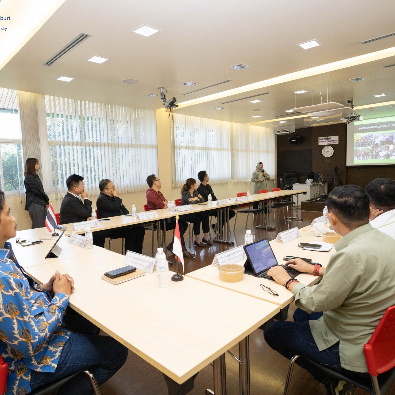 วันที่ 1 ธันวาคม 2568 ผู้ช่วยศาสตราจารย์ ดร.ธัชวีร์ ลีละวัฒน์ รองอธิการบดีฝ่ายวิทยาเขตกาญจนบุรี พร้อมด้วยคณะผู้บริหาร และคณาจารย์สาขาวิชาวิทยาศาสตร์การเกษตร และสาขาวิชาชีววิทยาเชิงอนุรักษ์ ร่วมให้การต้อนรับ Prof. Dr. Ir. A. Mujetahid M., S.Hut., MP. IPU, Dean of the Faculty of Forestry, Hasanuddin University สาธารณรัฐอินโดนีเซีย และคณะผู้บริหาร ณ ห้อง Co-Working Space อาคารเรียนรวม วิทยาเขตกาญจนบุรี และร่วมประชุมหารือแนวทางความร่วมมือในอนาคต แลกเปลี่ยนความรู้ทางวิชาการระหว่างประเทศ ในโอกาสนี้ ได้เข้าแลกเปลี่ยนเรียนรู้ภายในพิพิธภัณฑ์พืชแห่งภูมิภาคตะวันตก และพิพิธภัณฑ์ธรณีศาสตร์ และเยี่ยมชมพื้นที่โดยรอบวิทยาเขตกาญจนบุรี