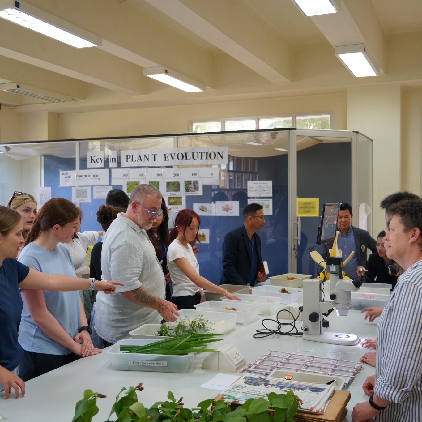 วันที่ 11 ธันวาคม 2567 ผู้ช่วยศาสตราจารย์ ดร.อำนาจ เจรีรัตน์ ผู้ช่วยอธิการบดีฝ่ายวิทยาเขตกาญจนบุรี ให้การต้อนรับ Associate Professor Catherine Gorrie, Director, Learning, Innovation and Strategy University of Technology Sydney, Faculty of Science, Sydney, Australia และคณะนักศึกษาแลกเปลี่ยนจาก University of Technology Sydney เครือรัฐออสเตรเลีย ภายใต้โครงการ “UTS Short-course Student Mobility Program” โดยกองวิเทศสัมพันธ์ มหาวิทยาลัยมหิดล ซึ่งเข้ามาแลกเปลี่ยนเรียนรู้ทักษะด้านวิชาการและวิจัยภายใต้สาขาวิทยาศาสตร์และเทคโนโลยี รวมทั้งแลกเปลี่ยนด้านวัฒนธรรม ในโอกาสนี้ได้เข้าเยี่ยมชมพิพิธภัณฑ์พืชแห่งภูมิภาคตะวันตก (Herbarium), พิพิธภัณฑ์ธรณีศาสตร์ (Geoscience Museum) และพื้นที่โดยรอบวิทยาเขตกาญจนบุรี