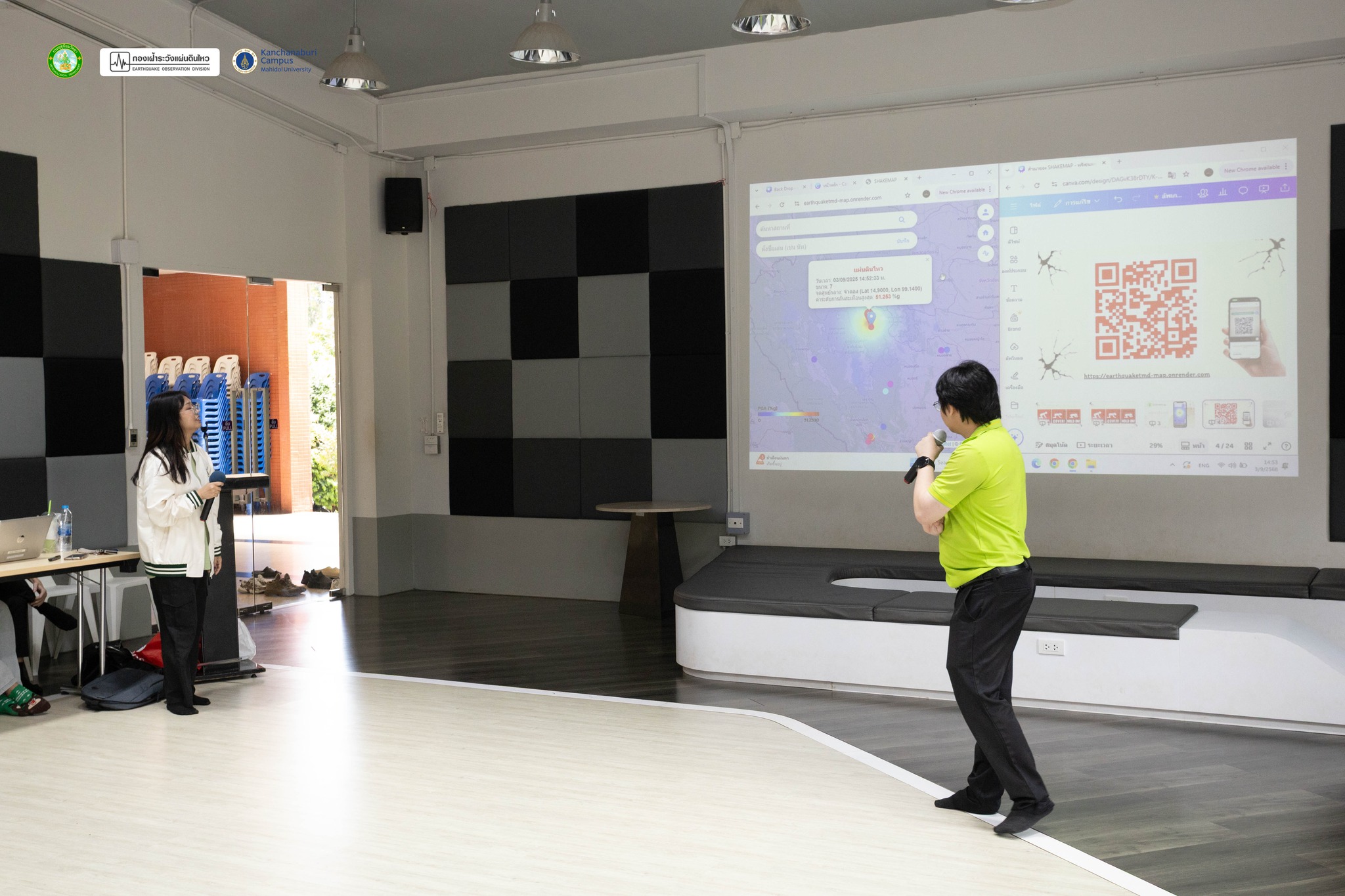 วันที่ 3 กันยายน 2568 คณาจารย์และนักศึกษาสาขาวิชาวิศวกรรมสิ่งแวดล้อมและการจัดการภัยพิบัติ เข้ารับการอบรม “การพัฒนาระบบแจ้งเตือนระดับการสั่นสะเทือนจากเหตุการณ์แผ่นดินไหวในประเทศไทย โดยใช้แบบจำลองการลดทอน ครั้งที่ 3” โดยกองเฝ้าระวังแผ่นดินไหว กรมอุตุนิยมวิทยาได้จัดโครงการวิจัยดังกล่าวขึ้น ซึ่งได้รับเกียรติจากคุณสัณฑวัฒน์ สุขรังษี ผู้อำนวยการส่วนวิจัยและพัฒนาแผ่นดินไหวและสึนามิ เป็นผู้รับผิดชอบโครงการและเป็นประธานในพิธีเปิด พร้อมทีมวิทยากรโดยมีการแบ่งกลุ่มทำกิจกรรมการประยุกต์ใช้ระบบแจ้งเตือนระดับการสั่นสะเทือนและการแสดงผลข้อมูล โดยการอบรมดังกล่าว มีวัตถุประสงค์เพื่อพัฒนาระบบแจ้งเตือนระดับการสั่นสะเทือนจากเหตุการณ์แผ่นดินไหวในประเทศไทย โดยใช้แบบจำลองการลดทอน ครั้งที่ 3 เพื่อให้ข้อมูลระดับการสั่นสะเทือนและผลกระทบที่คาดว่าจะเกิดขึ้น เมื่อเกิดเหตุการณ์แผ่นดินไหวที่ส่งผลกระทบต่อประเทศไทย และให้ความรู้เผยแพร่การพัฒนาระบบแจ้งเตือนระดับการสั่นสะเทือนและการแสดงผลข้อมูลให้เป็นประโยชน์กับประชาชนในพื้นที่เสี่ยงภัยแผ่นดินไหว ณ ห้อง Co-working space อาคารเรียนรวม วิทยาเขตกาญจนบุรี