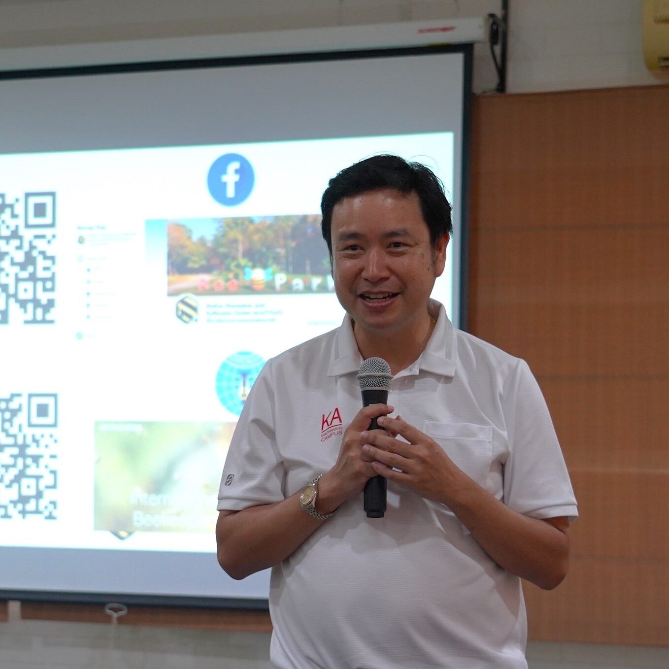 วันที่ 1 กันยายน 2568 ผู้ช่วยศาสตราจารย์ ดร.ธัชวีร์ ลีละวัฒน์ รองอธิการบดีฝ่ายวิทยาเขตกาญจนบุรี พร้อมคณะผู้บริหารวิทยาเขตกาญจนบุรี ให้การต้อนรับคุณวนัส แต้ไพสิฐพงษ์ กรรมการสภามหาวิทยาลัยมหิดลผู้ทรงคุณวุฒิ และกรรมการพัฒนาวิทยาเขตกาญจนบุรี และรองศาสตราจารย์ ดร.อรวรรณ ดวงภักดี หัวหน้าศูนย์วิจัยผึ้งพื้นเมืองเเละเเมลงผสมเกสร มจธ.ราชบุรี ประธานภูมิภาคเอเชียสมาคมผึ้งโลก Apimondia พร้อมด้วยอาจารย์ปรีชา รอดอิ่ม นักวิจัยประจำศูนย์ฯ และทีมวิทยากรในการบรรยายให้ความรู้และฝึกปฏิบัติการในหัวข้อ “การเลี้ยงผึ้งพื้นเมือง เพื่อผลิตน้ำผึ้งตามมาตรฐาน และการช่วยผสมเกสรเพิ่มผลผลิตทางการเกษตร“ ให้กับบุคลากรและนักศึกษา มหาวิทยาลัยมหิดล วิทยาเขตกาญจนบุรี พร้อมด้วยกลุ่มเกษตรกร วิสาหกิจชุมชนในอำเภอไทรโยค เข้าร่วมอบรม โดยมหาวิทยาลัยมหิดล วิทยาเขตกาญจนบุรี ได้ร่วมมือในโครงการ “การพัฒนาห่วงโซ่คุณค่าเเละศักยภาพผู้ประกอบการพื้นที่การเลี้ยงผึ้ง เเละผลิตน้ำผึ้งในพื้นที่เพื่อเชื่อมโยงห่วงโซ่่คุณค่าน้ำผึ้งไทย” เพื่อการพัฒนาขีดความสามารถ สร้างเศรษฐกิจฐานรากเเละเศรษฐกิจหมุนเวียนในพื้นที่ ณ ศูนย์พัฒนาและฝึกอบรมวิมานดิน มหาวิทยาลัยมหิดลวิทยาเขตกาญจนบุรี