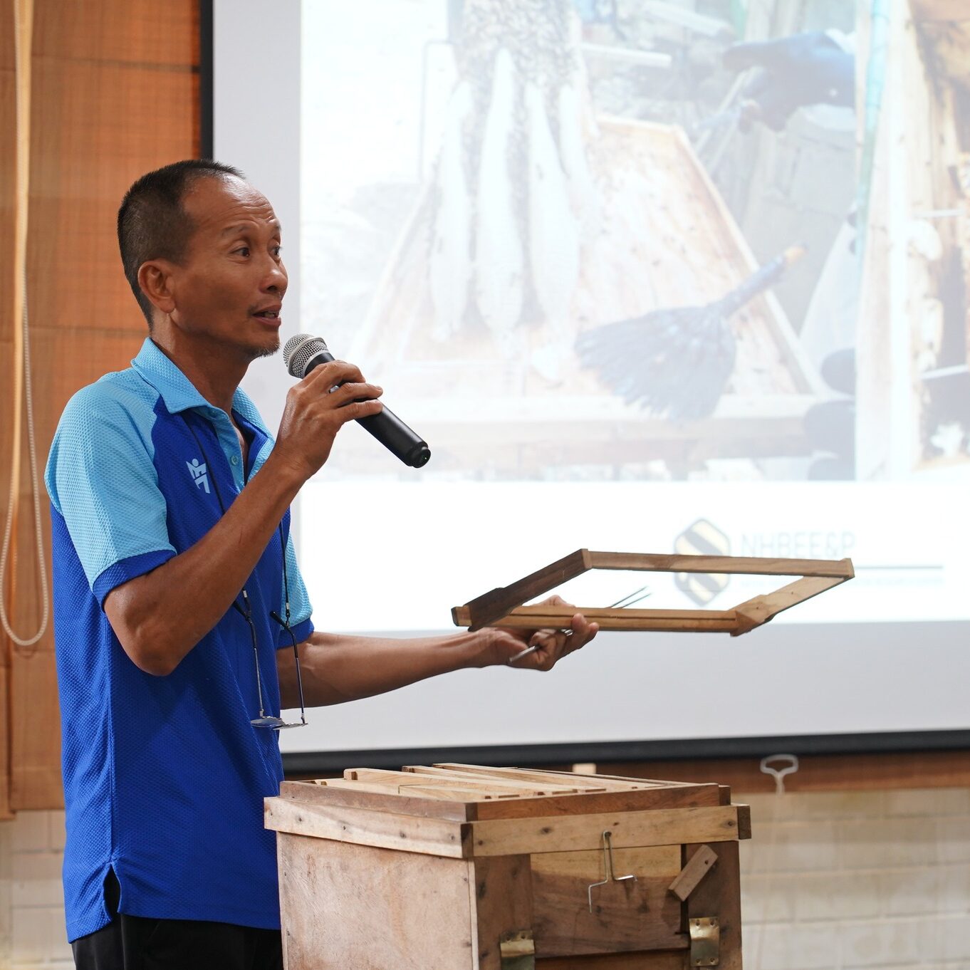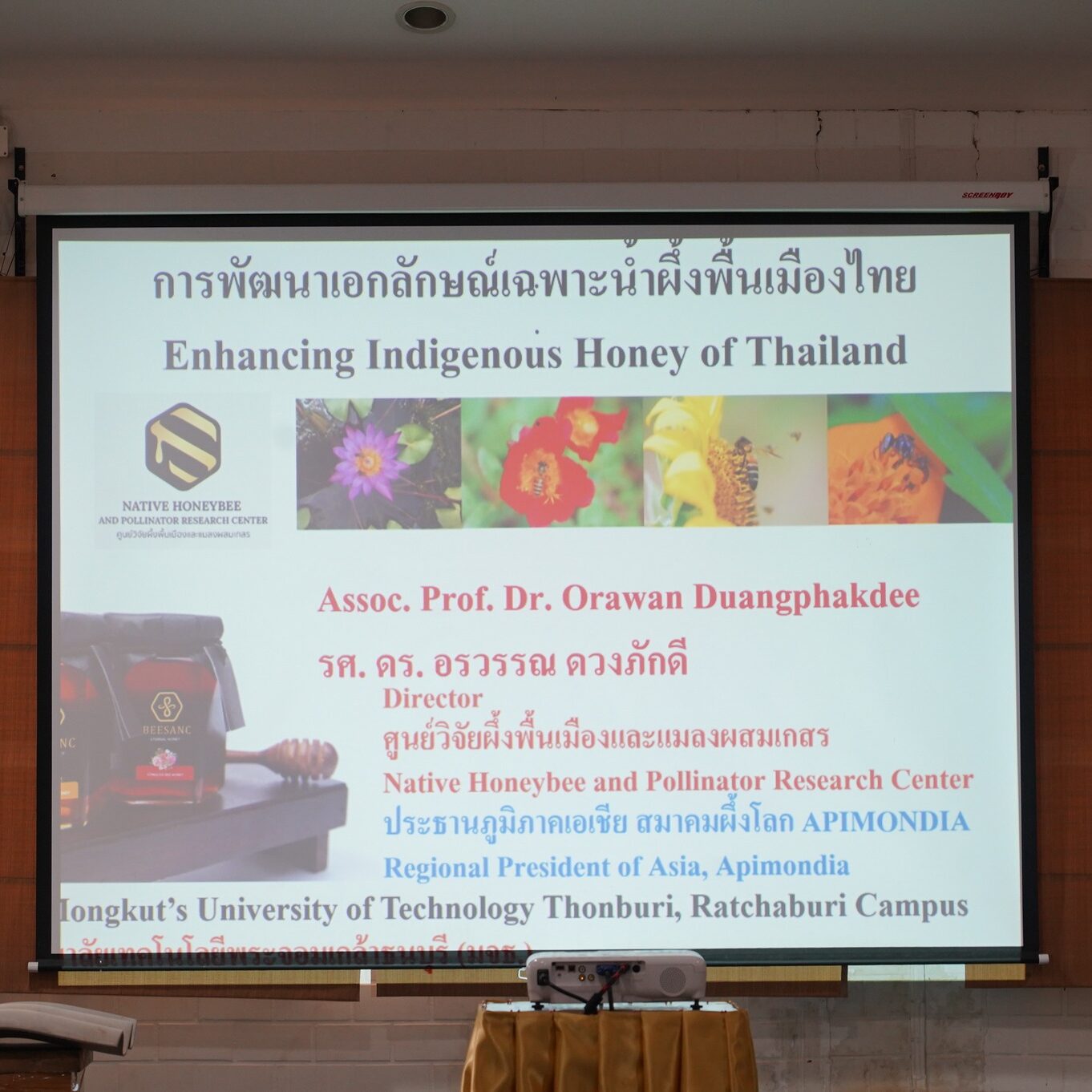 การบรรยายให้ความรู้และฝึกปฎิบัติการในหัวข้อ “การเลี้ยงผึ้งพื้นเมือง เพื่อผลิตน้ำผึ้งตามมาตรฐาน และการช่วยผสมเกสรเพิ่มผลผลิตทางการเกษตร และการพัฒนาเอกลักษณ์เฉพาะน้ำผึ้งพื้นเมืองไทย”